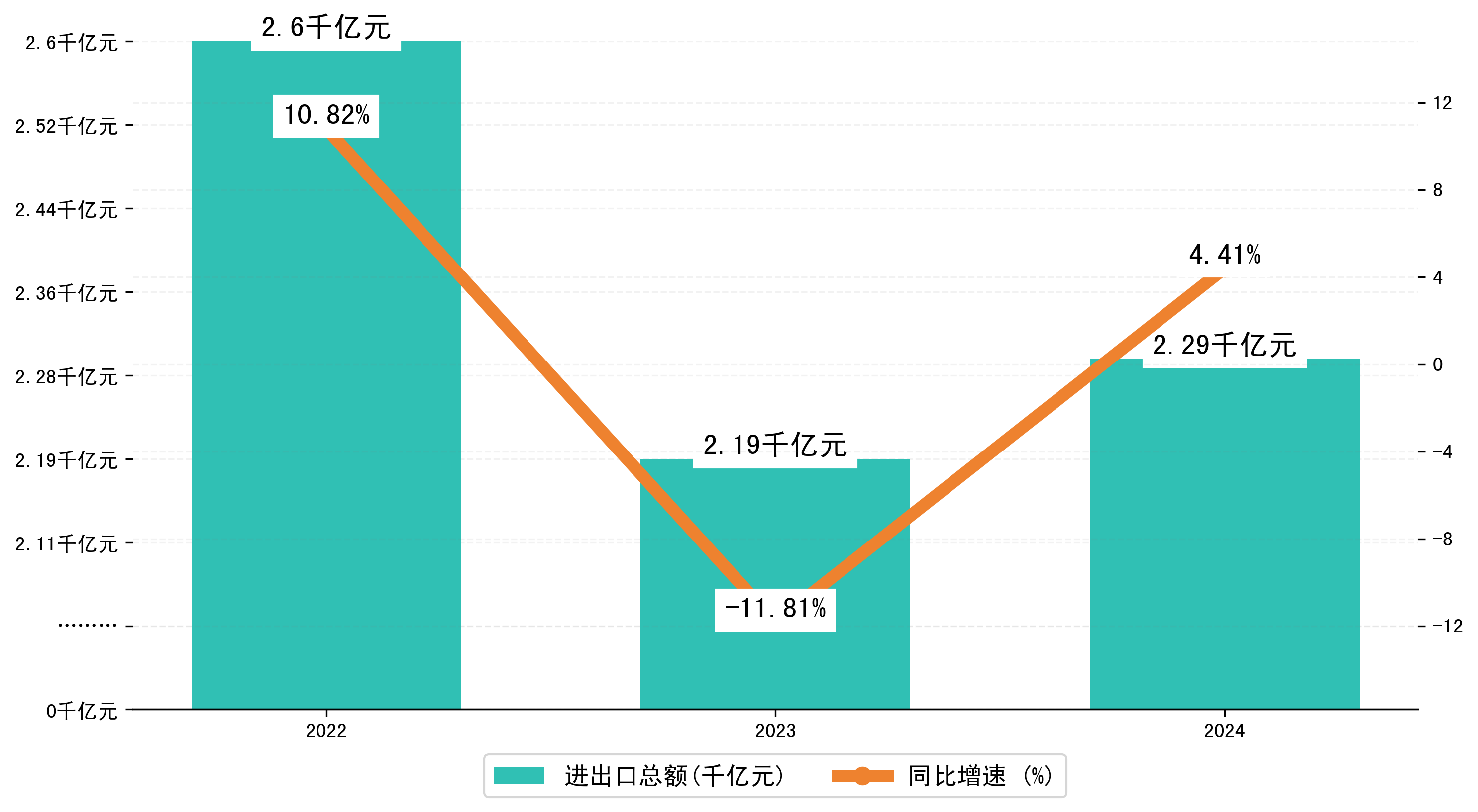 以人民币计,2024年1-10月长沙市进出口总额为2291,4000.1417万元,相比上年同期增加了96,7796.6647万元,同比减少了-2.60%。