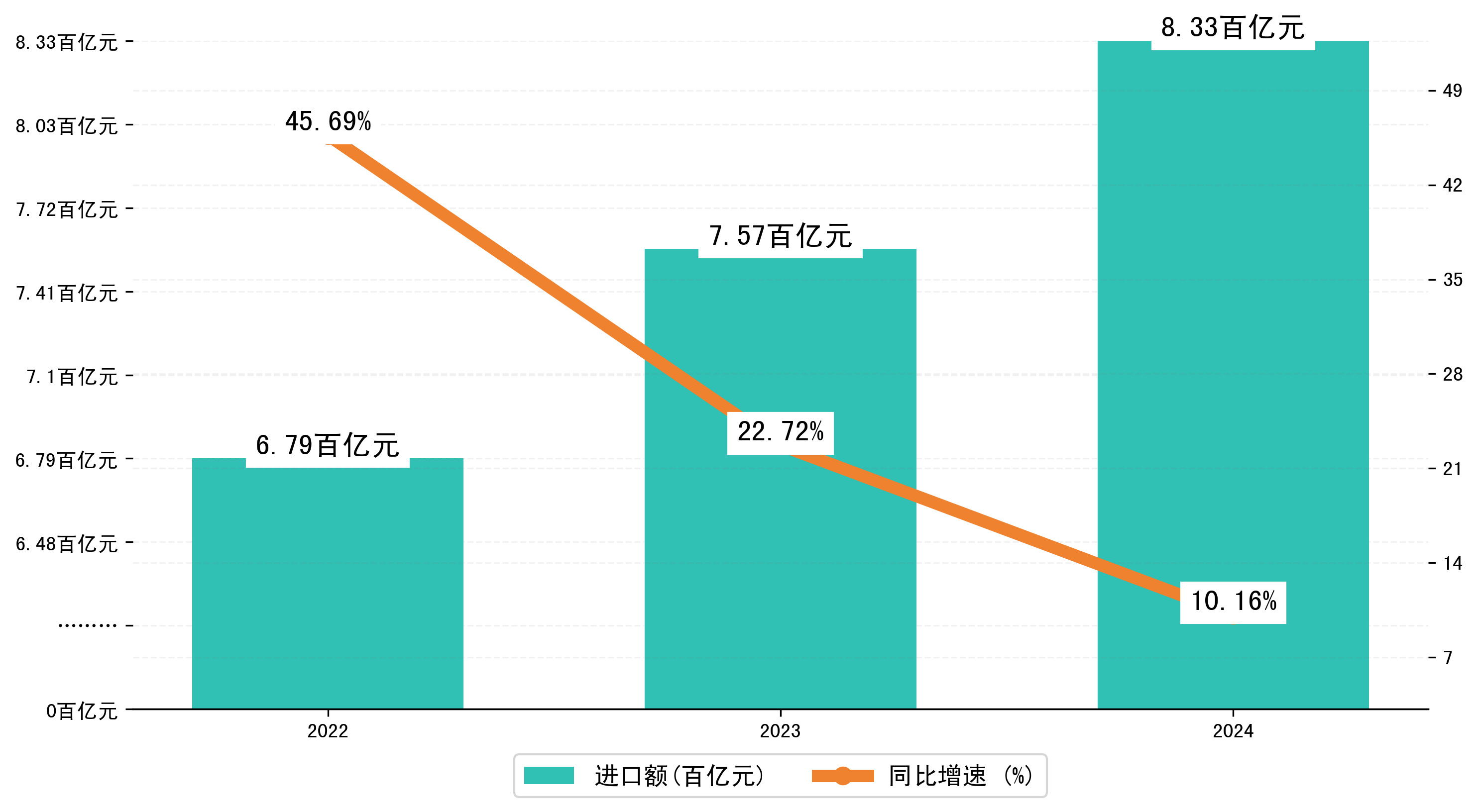 以人民币计,2024年1-10月长沙市进口额为833,4595.5812万元,相比上年同期增加了76,8805.4212万元,同比增加了9.70%。