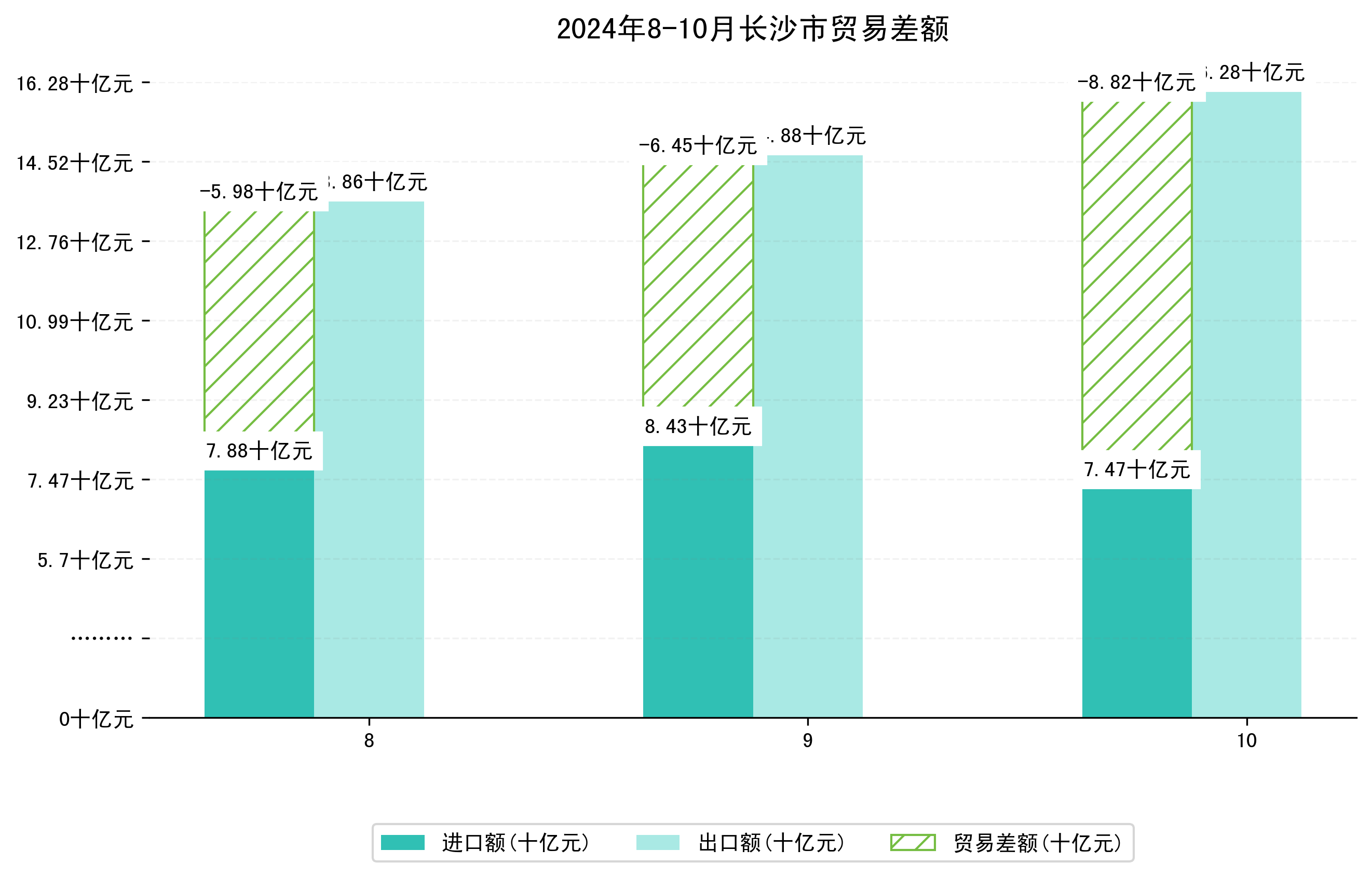 2024年10月长沙市进出口总额及进出口差额统计分析