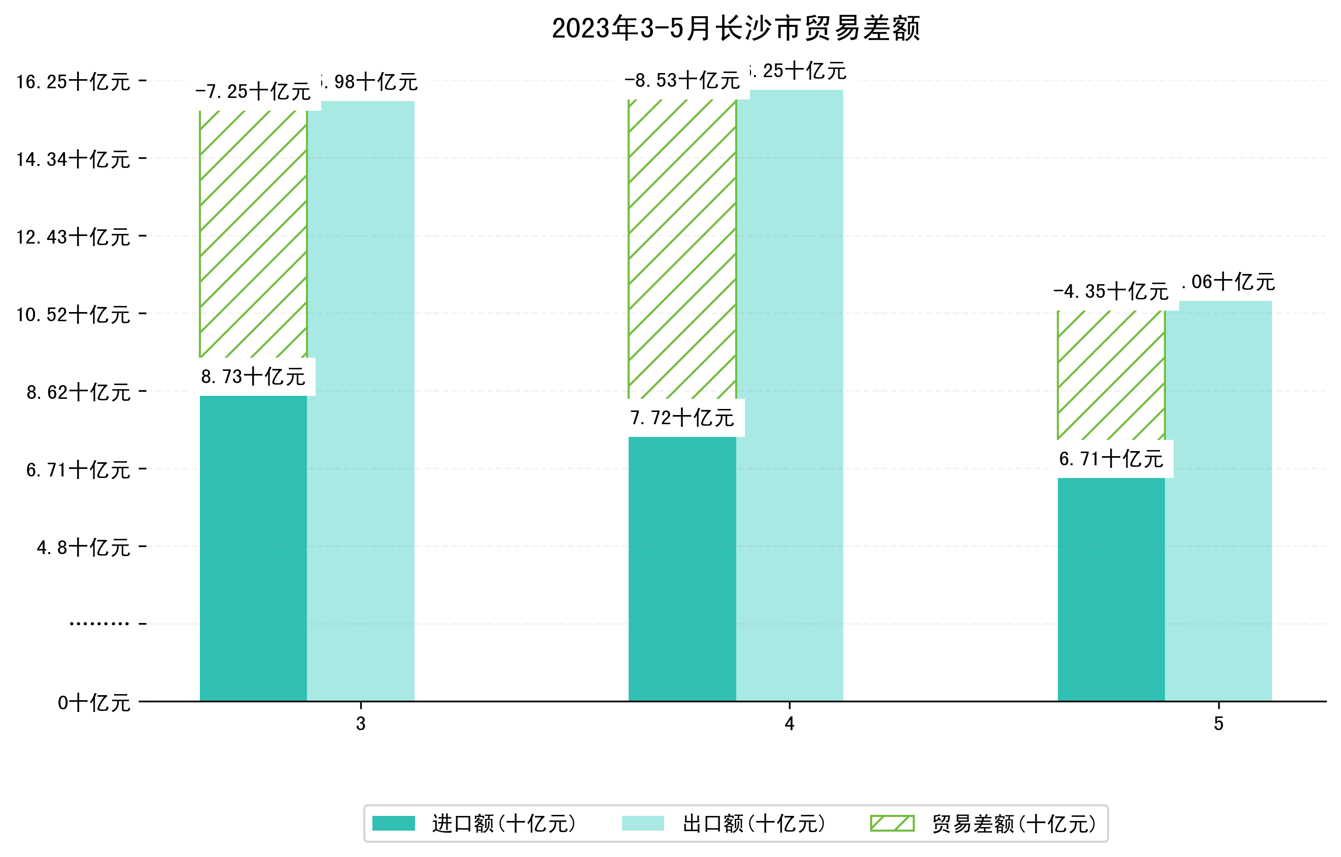 2023年5月长沙市进出口总额及进出口差额统计分析