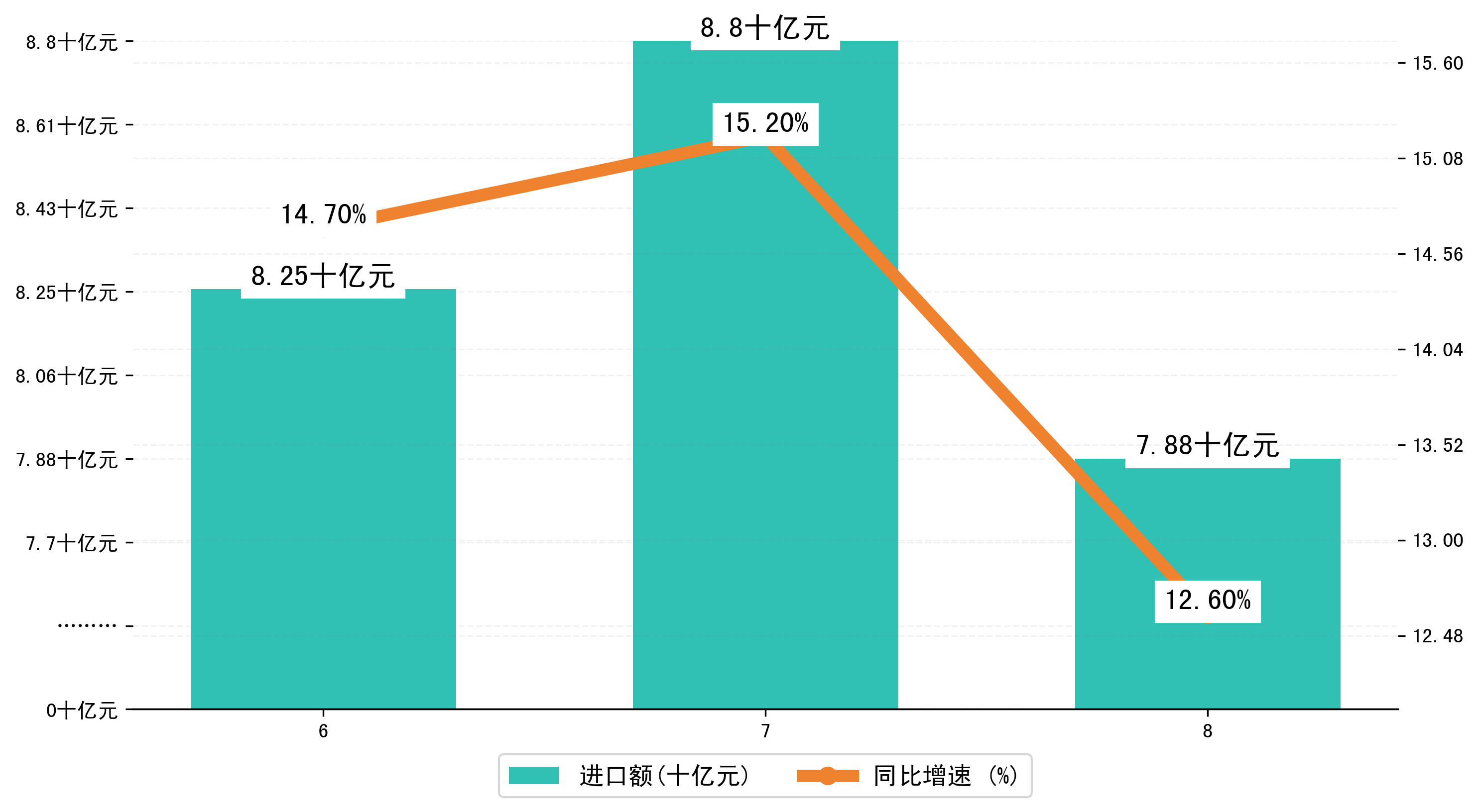 以人民币计,2024年1-8月长沙市进口额为674,7636.502万元,相比上年同期增加了75,1569.5368万元,同比增加了12.60%。