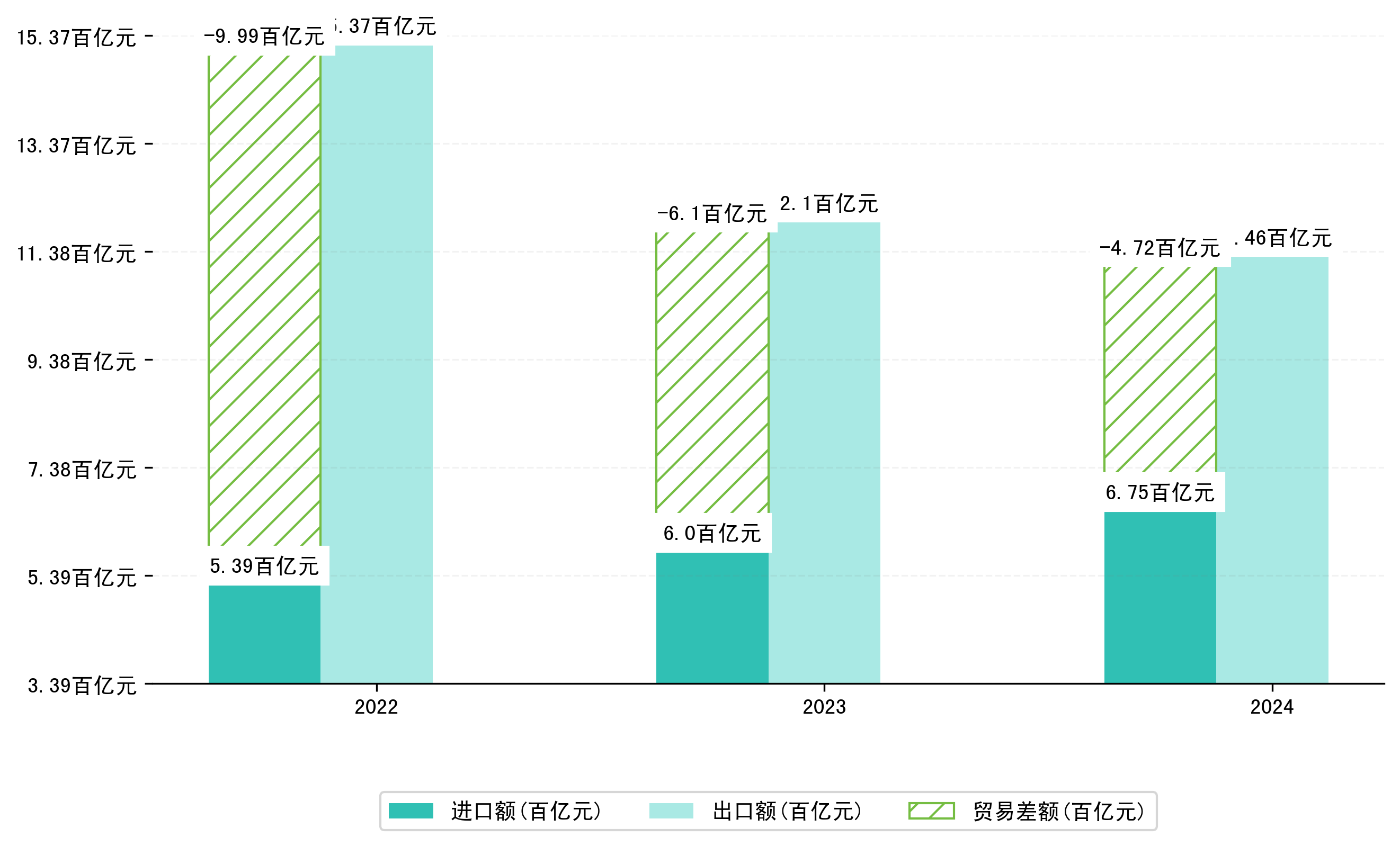 以人民币计,2024年1-8月长沙市贸易差额为471,5223,7193万元(贸易顺差),相比上年同期减少了138,7935,2537万元,同比减少-22.74%。