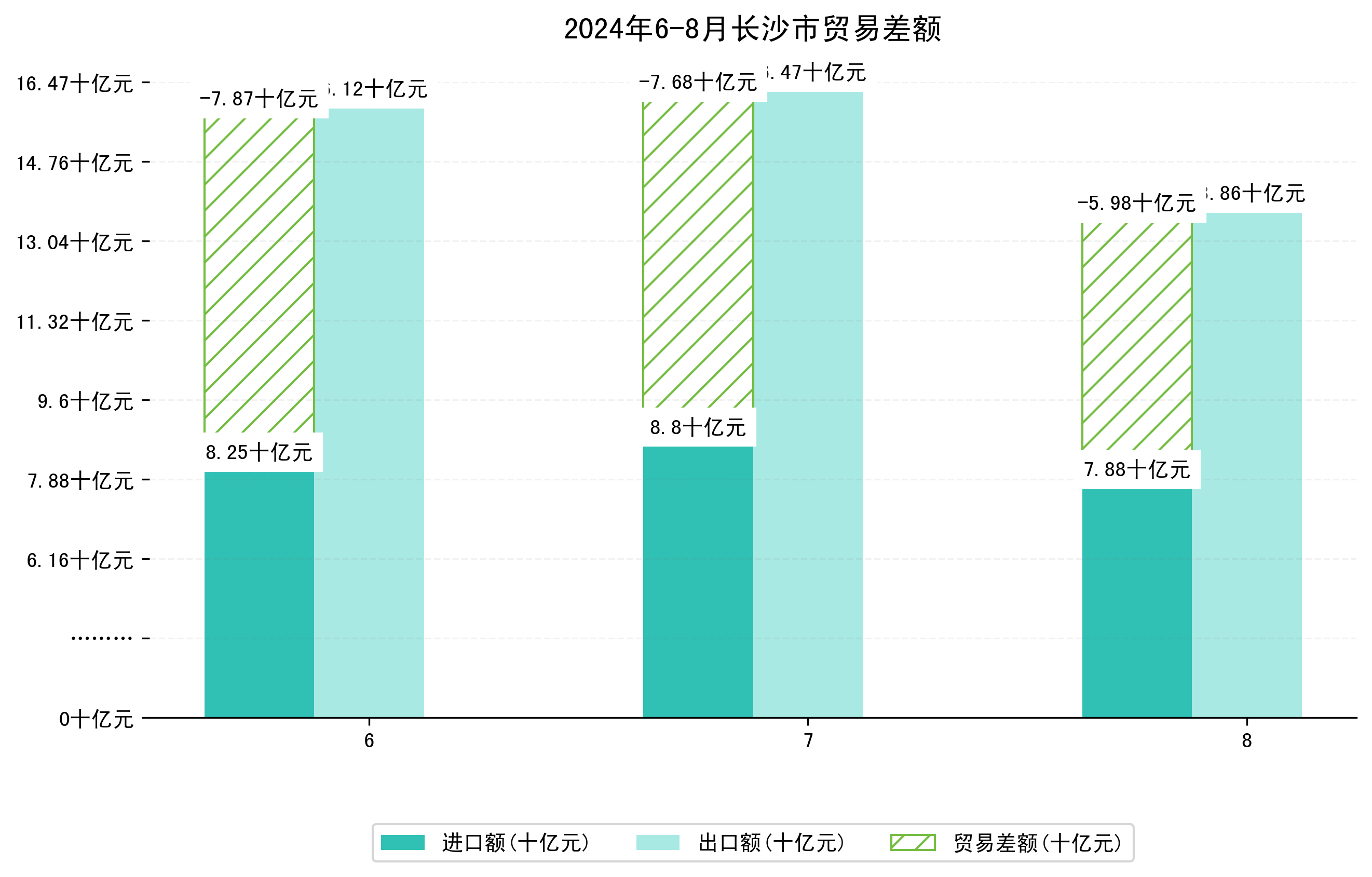 2024年8月长沙市进出口总额及进出口差额统计分析