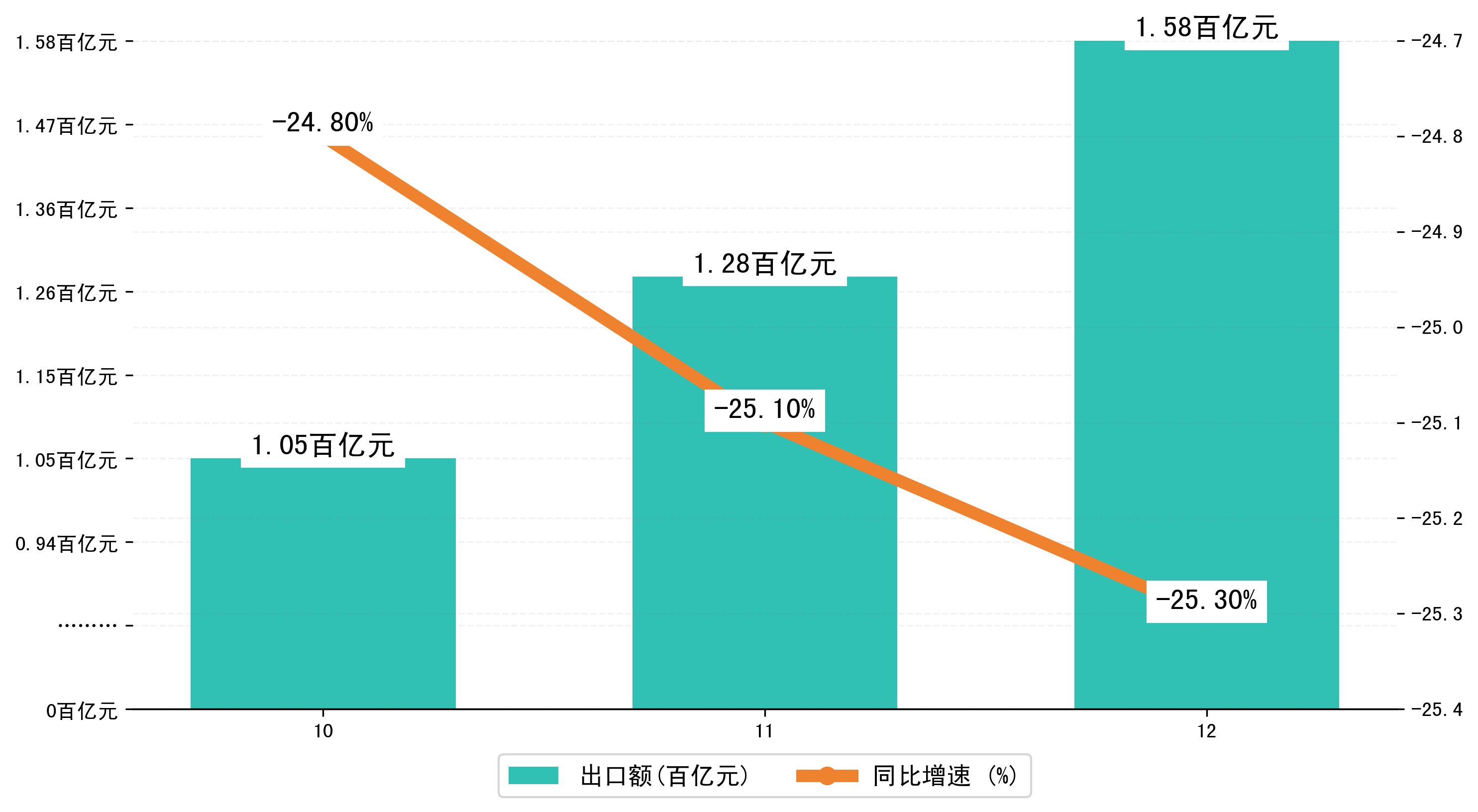 以人民币计,2023年12月长沙市出口额为157,6215.4838万元,相比上月增加了29,8973.6211万元;相比上年同期减少了59,8197.6689万元,同比减少了-25.30%。