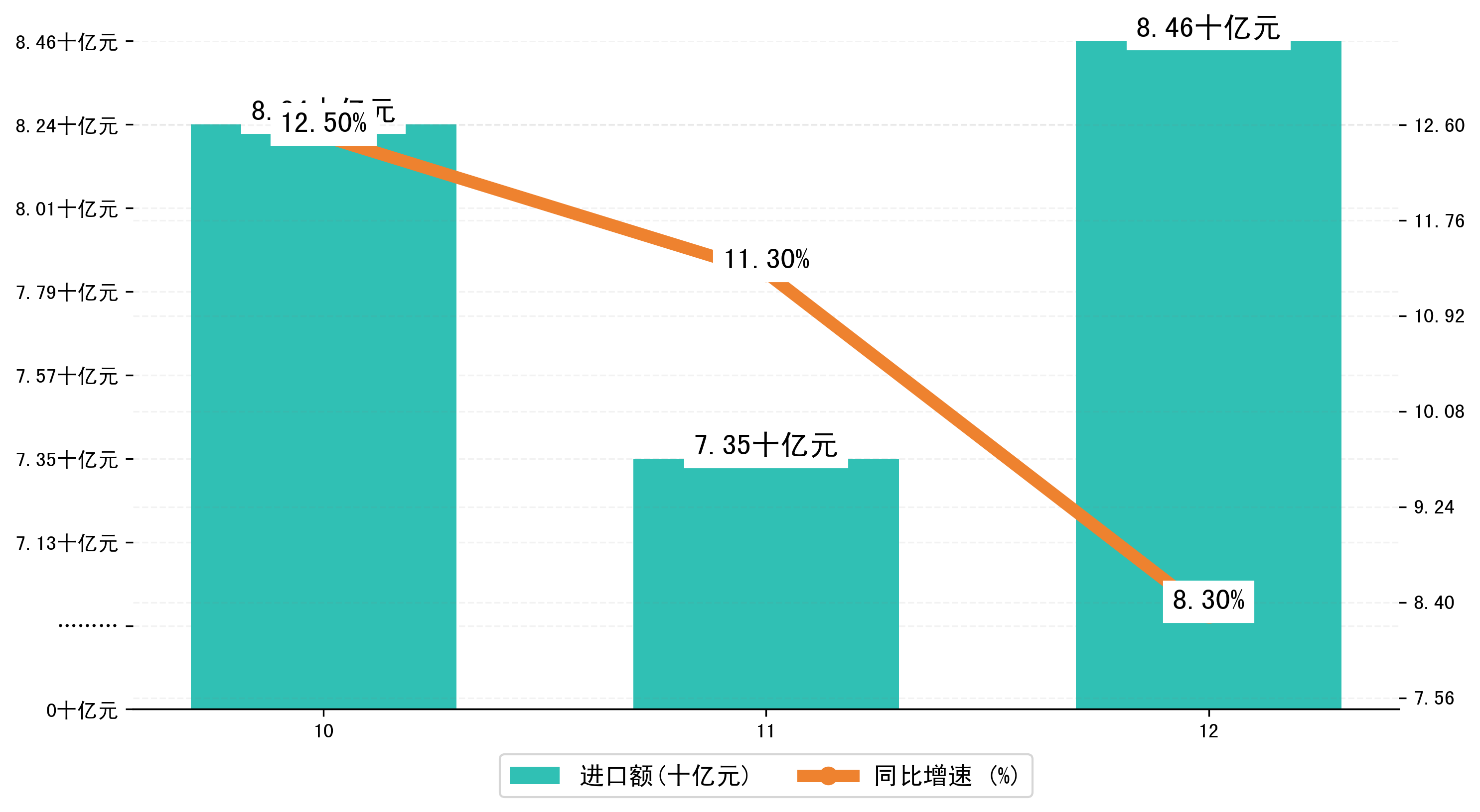 以人民币计,2023年12月长沙市进口额为84,5754.304万元,相比上月增加了11,0902.091万元;相比上年同期减少了5,3848.0975万元,同比增加了8.30%。
