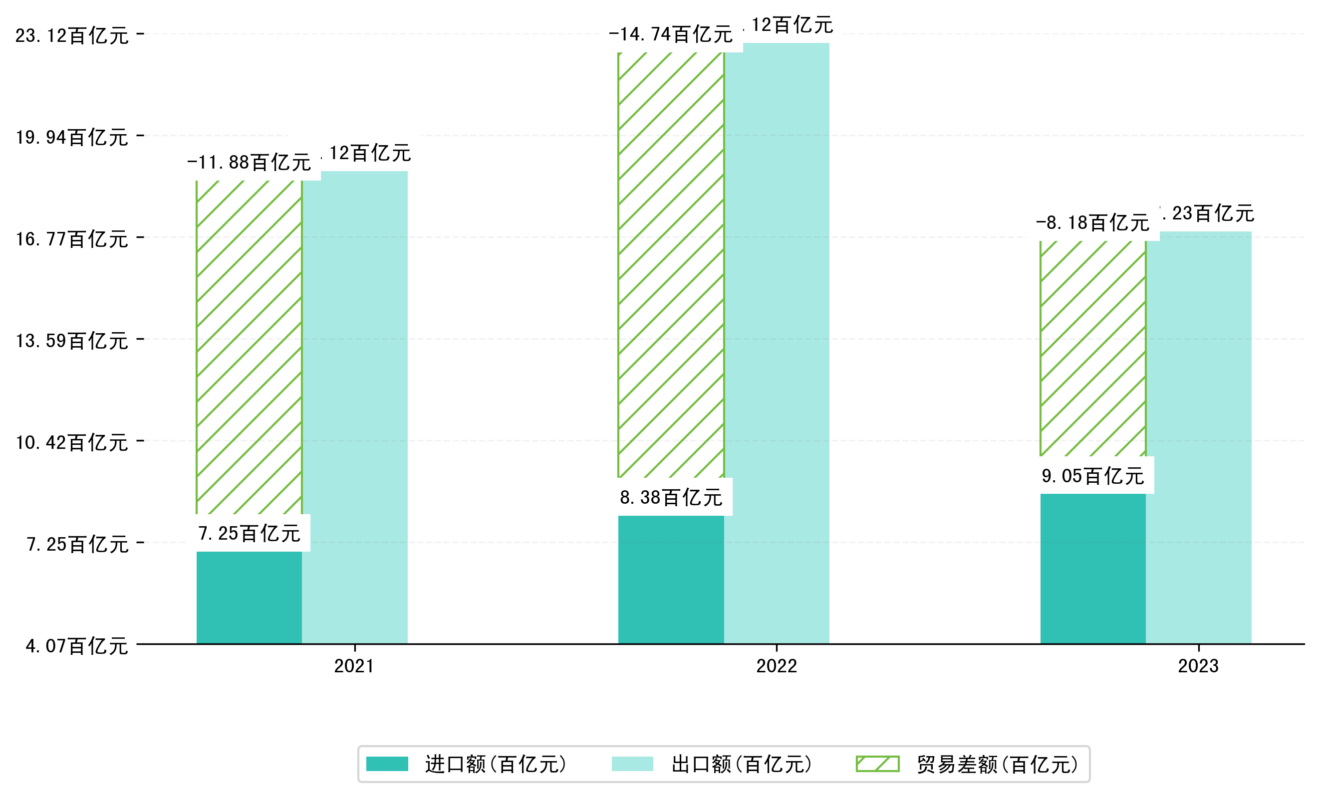 以美元计,2023年1-12月长沙市进口额为128,7363.4077万美元,相比上年同期增加了3,1892.9443万美元,同比增加2.80%。