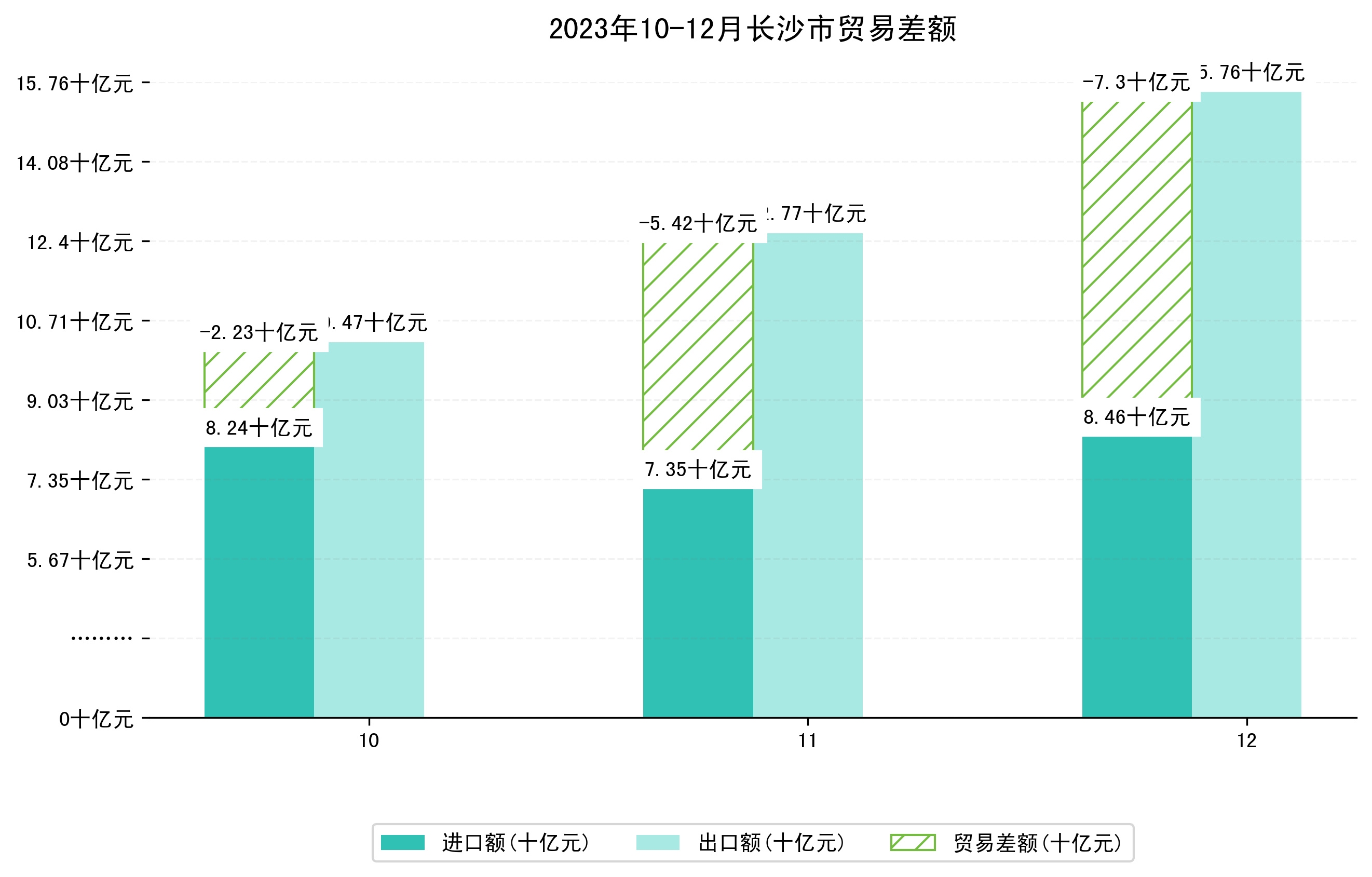 2023年12月长沙市进出口总额及进出口差额统计分析