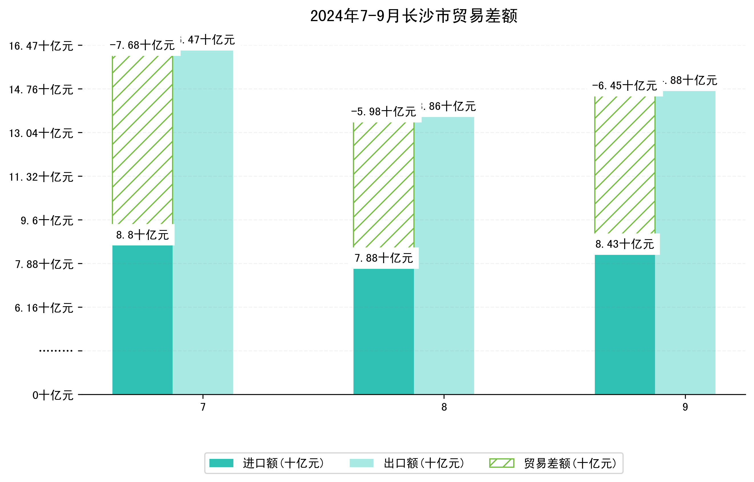 2024年9月长沙市进出口总额及进出口差额统计分析
