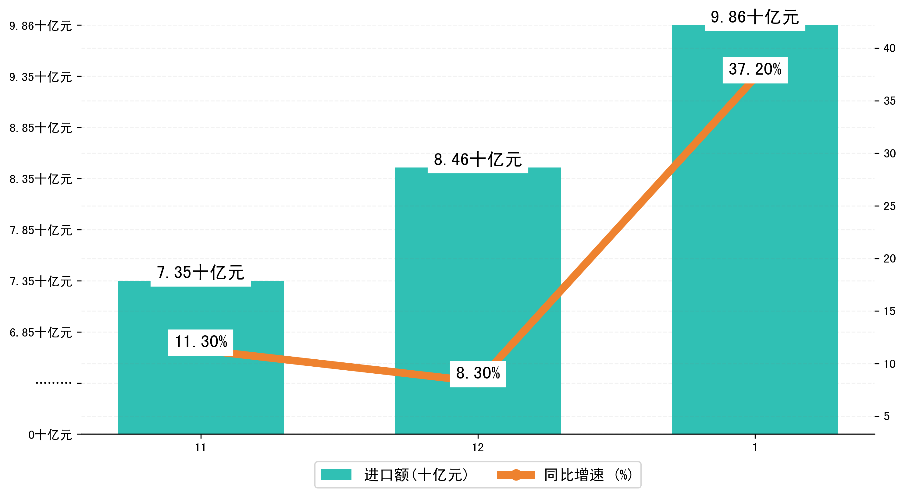 以人民币计,2024年1月长沙市进口额为98,5536.4224万元,相比上月增加了13,9782.1184万元;相比上年同期增加了27,7790.6817万元,同比增加了37.20%。