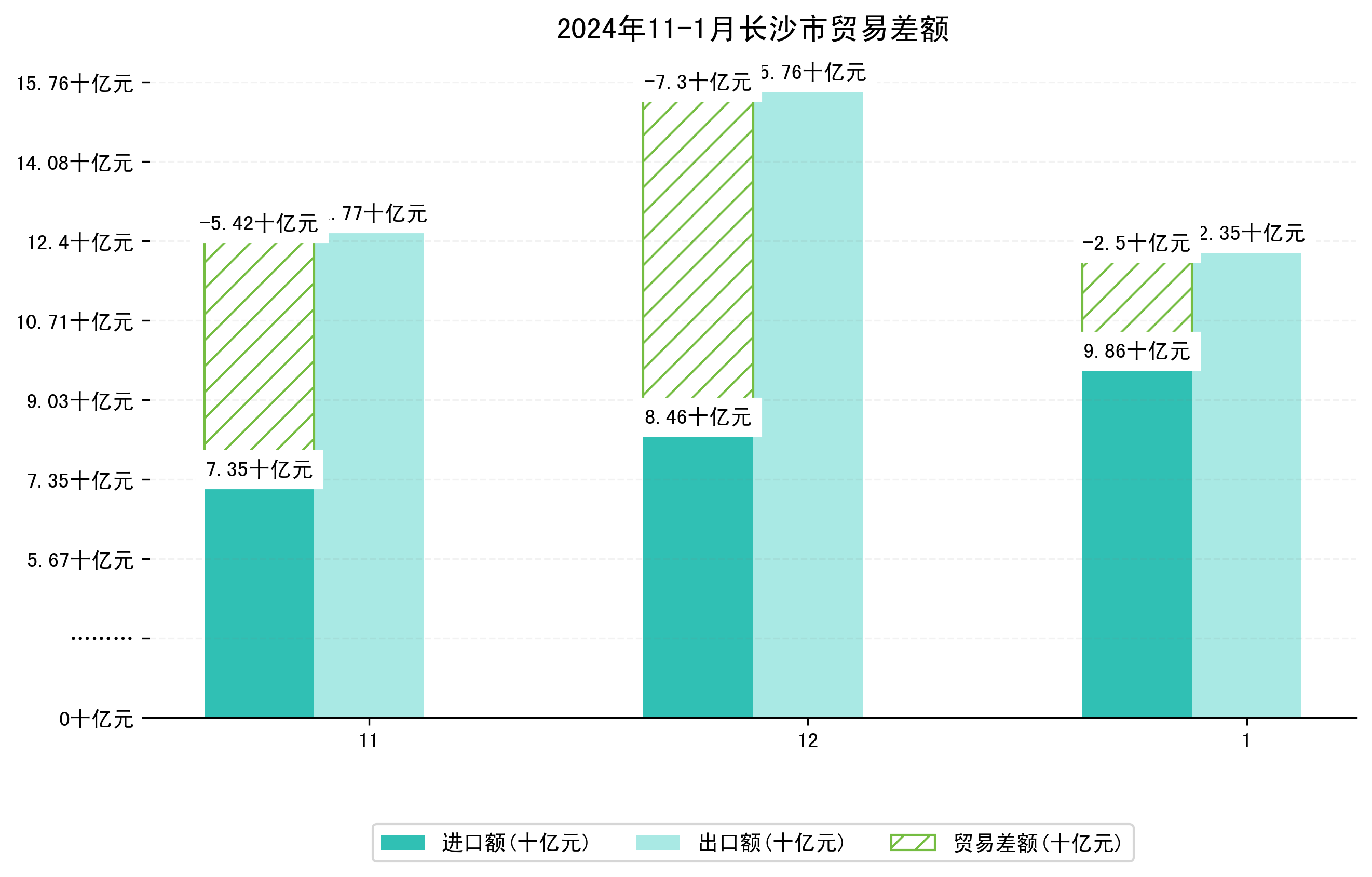 2024年1月长沙市进出口总额及进出口差额统计分析