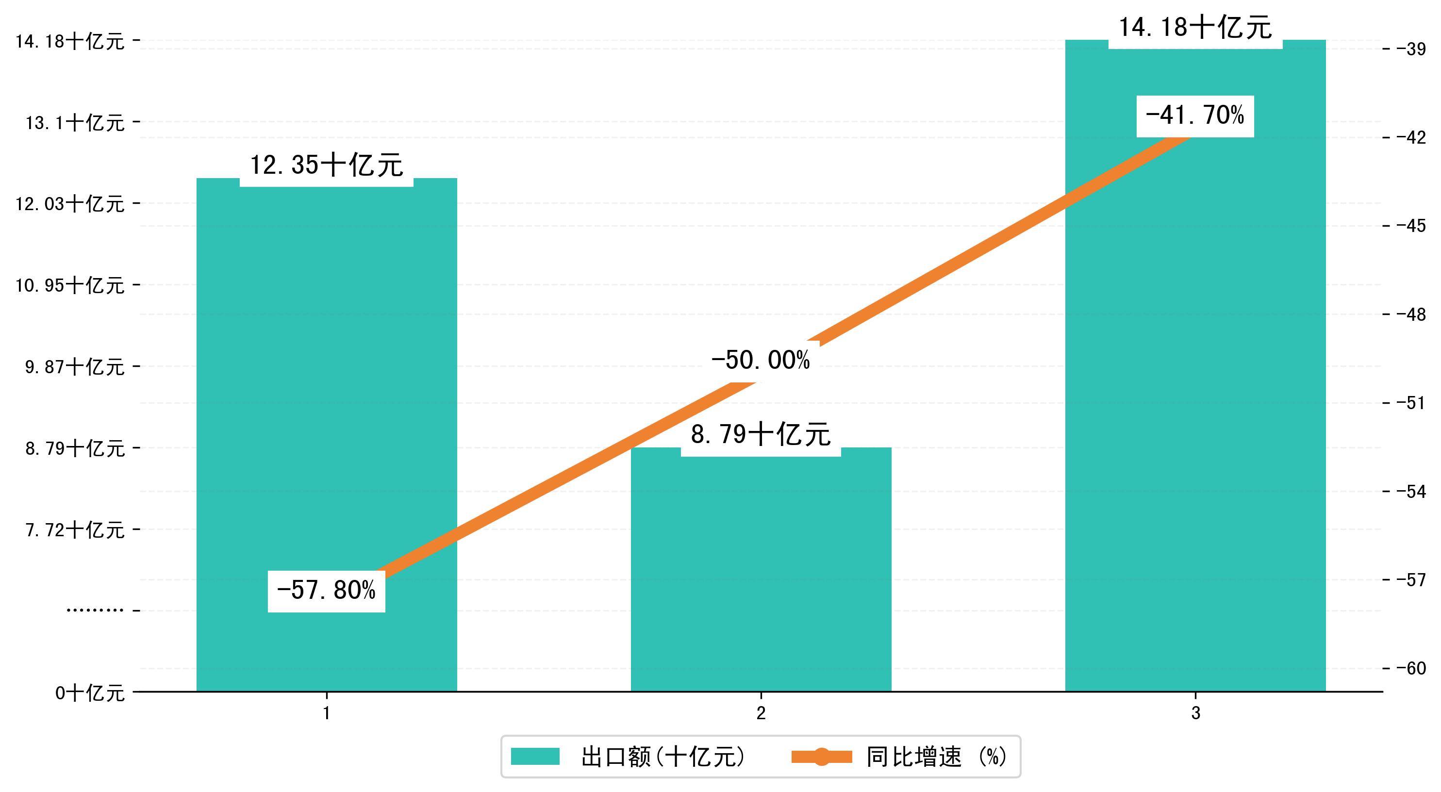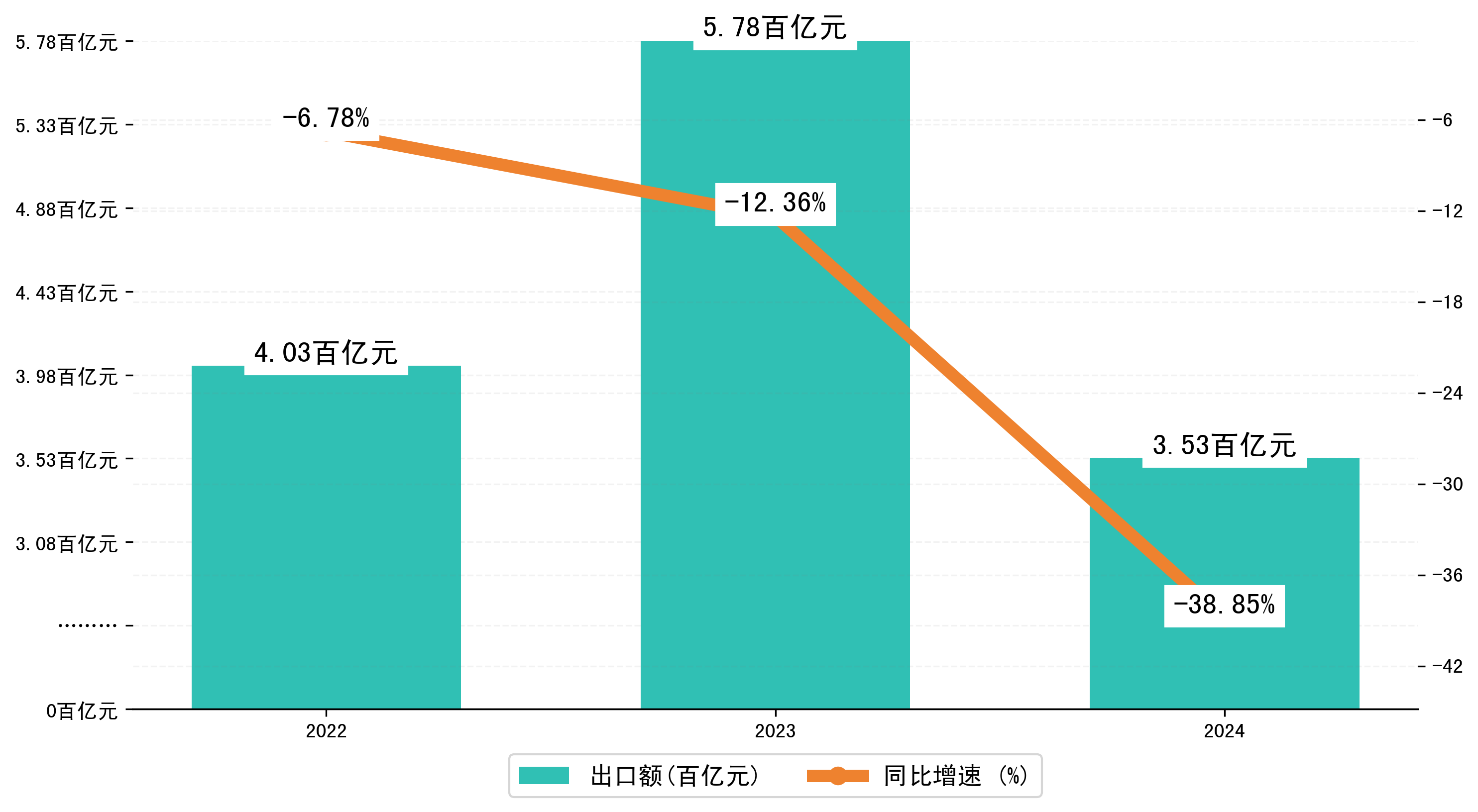 以人民币计,2024年1-3月长沙市出口额为353,2844.1017万元,相比上年同期减少了224,4272.5207万元,同比减少了-41.70%。