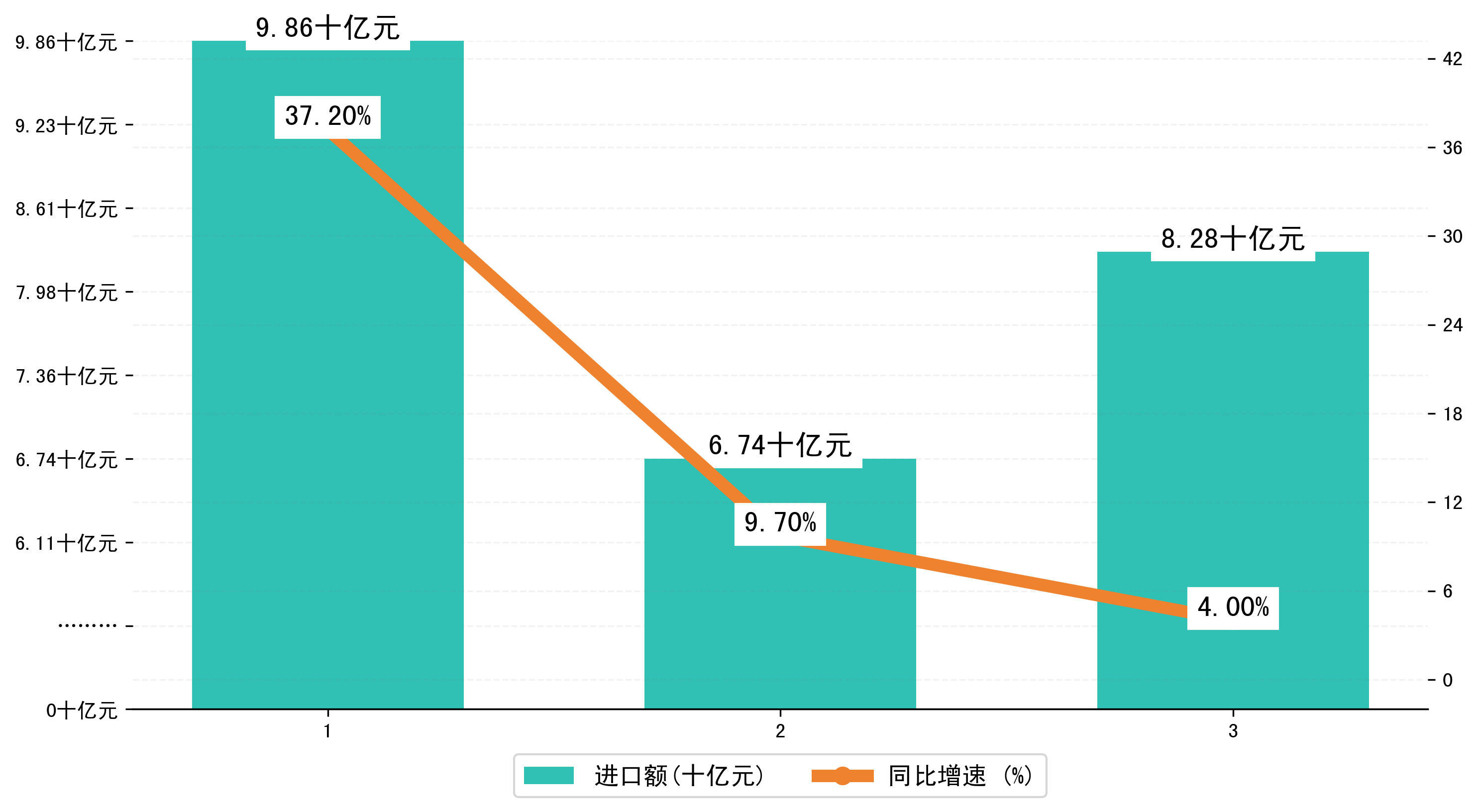 以美元计,2024年1-3月长沙市进口额为34,9132.5745万美元,相比上年同期增加了4098.0523万美元,同比增加0.60%。