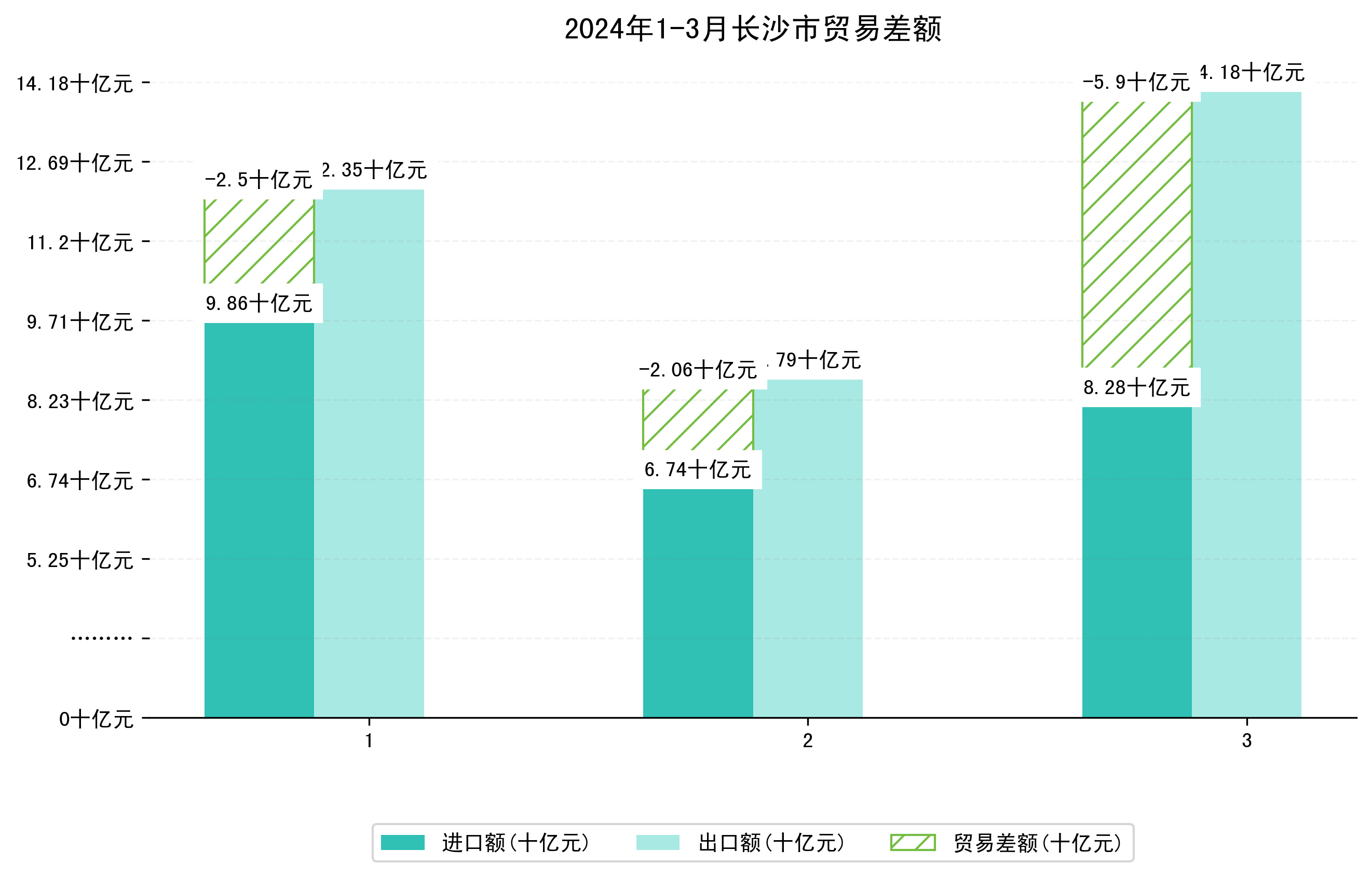 2024年3月长沙市进出口总额及进出口差额统计分析