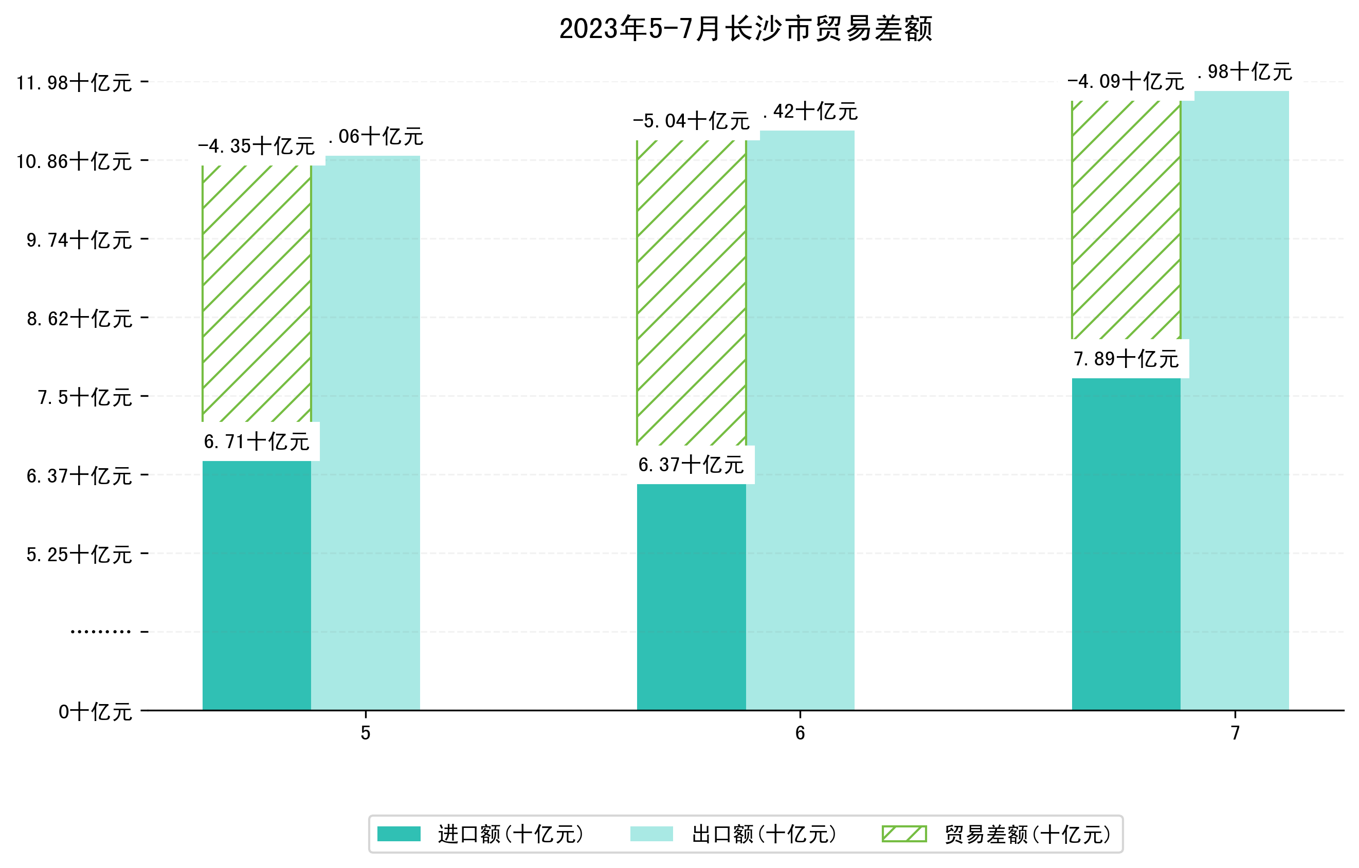 2023年7月长沙市进出口总额及进出口差额统计分析