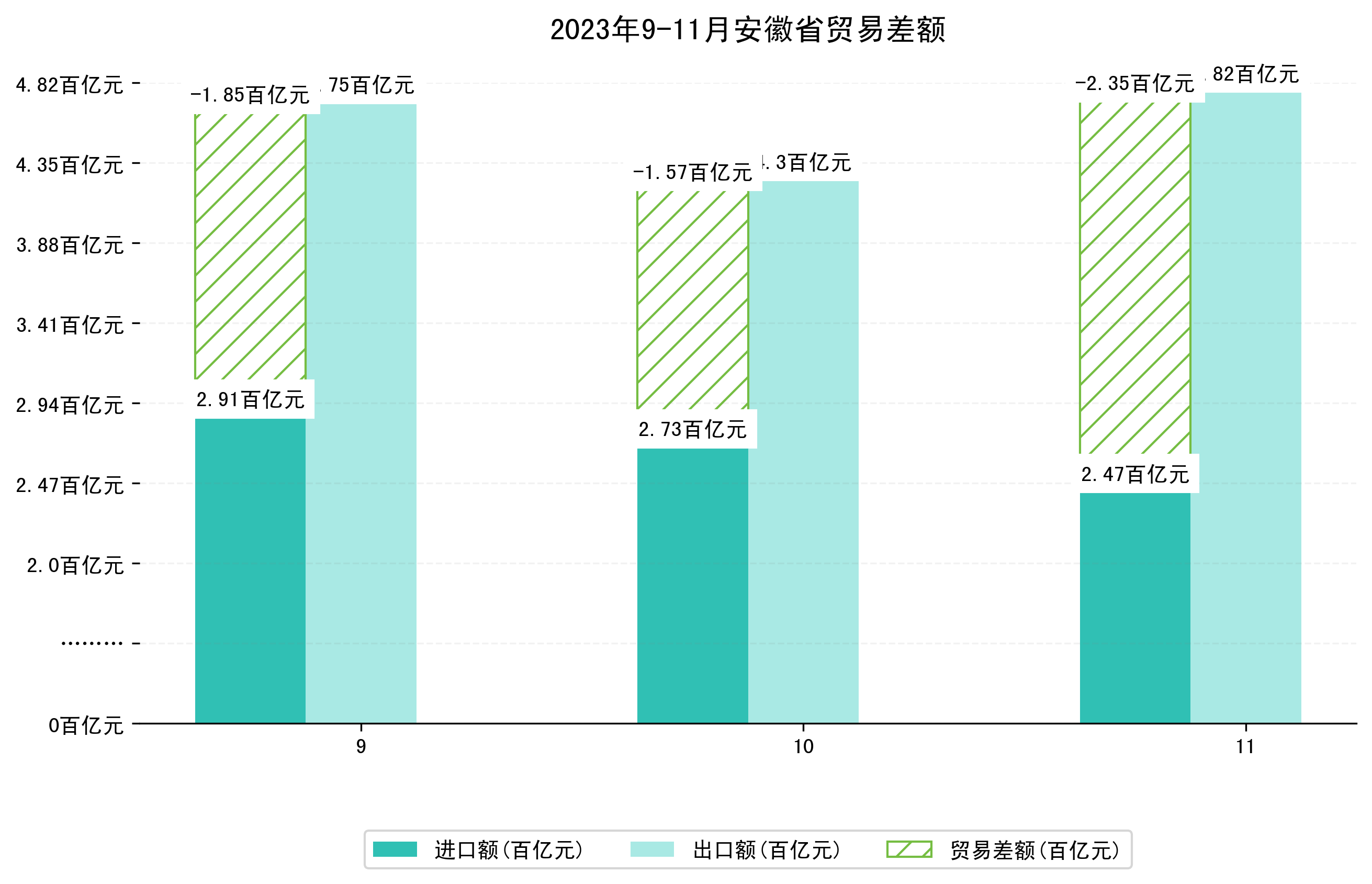 2023年11月安徽省进出口总额及进出口差额统计分析