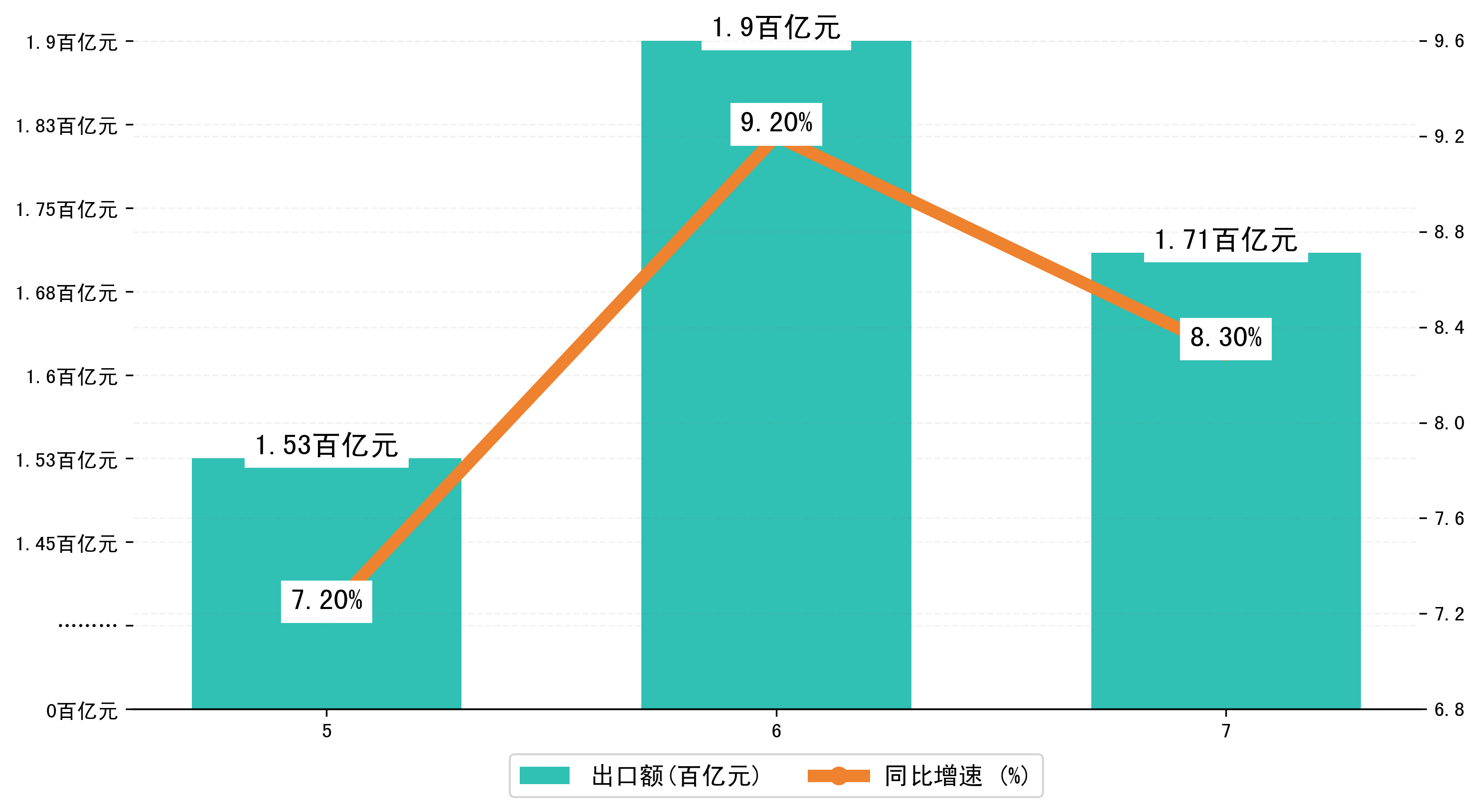 一、2025年7月长沙市单月出口总额及进出口差额统计分析