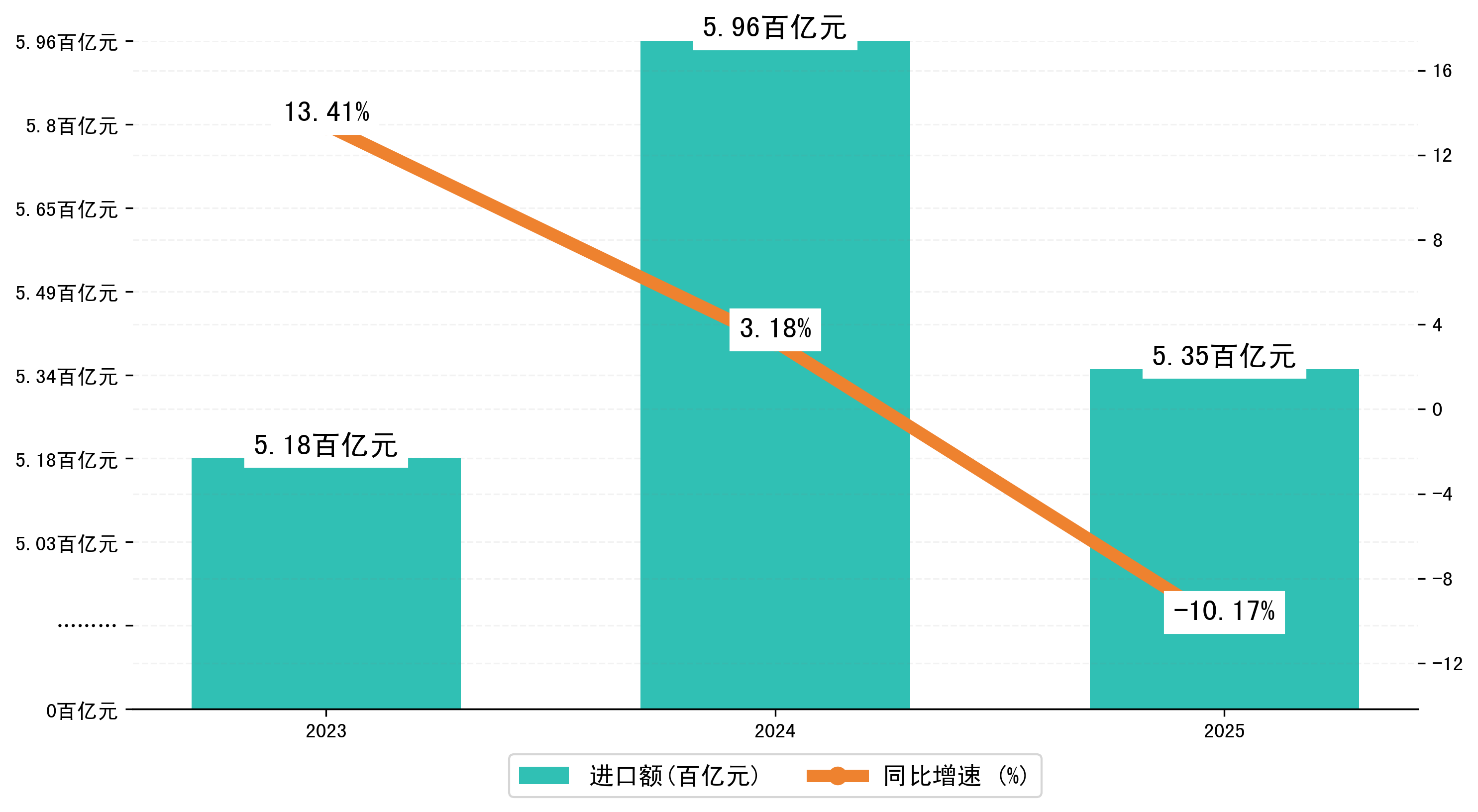 以人民币计,2025年1-7月长沙市进口额为534,9366.3971万元,相比上年同期减少了60,5837.0016万元,同比减少了-10.10%。
