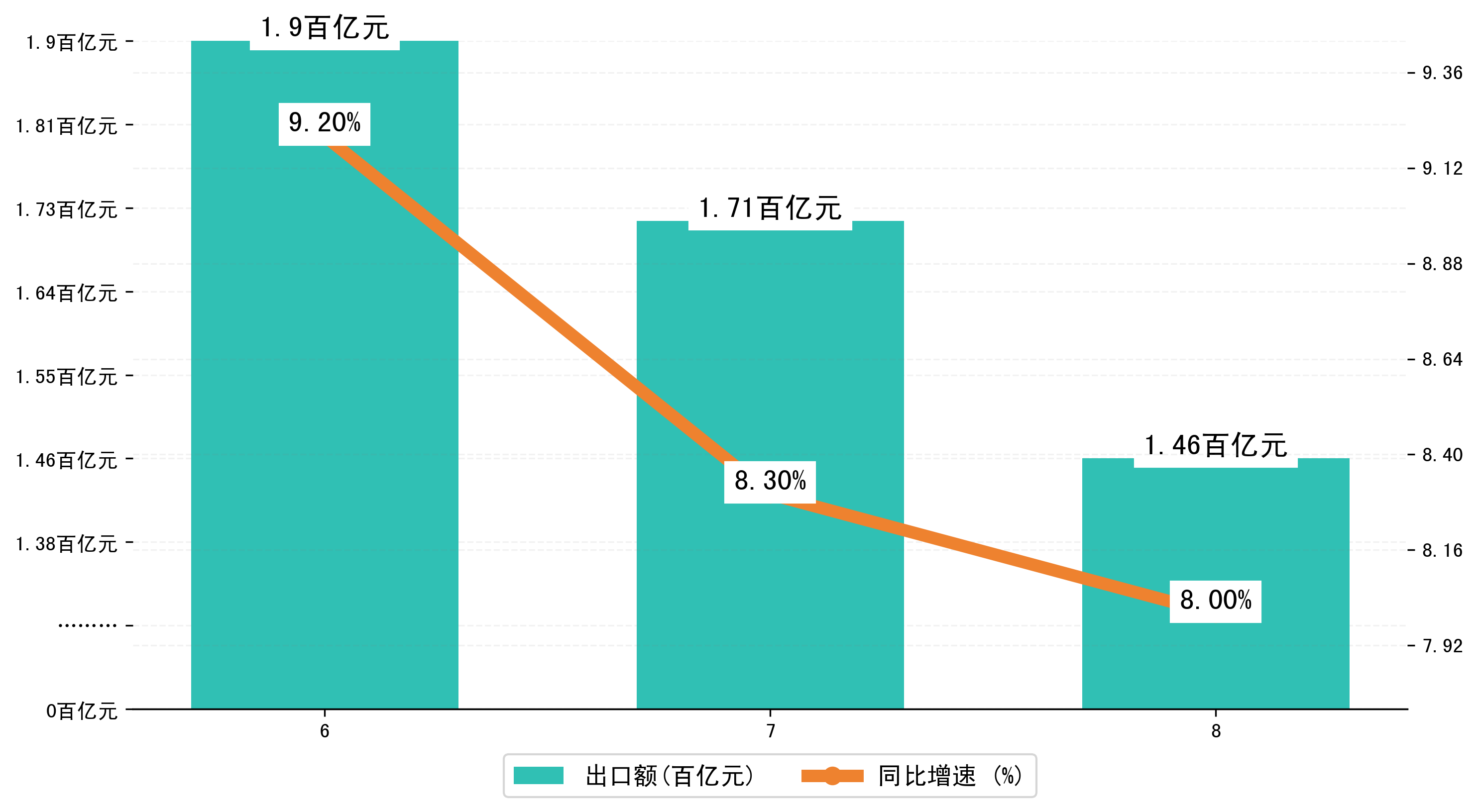 一、2025年8月长沙市单月出口总额及进出口差额统计分析