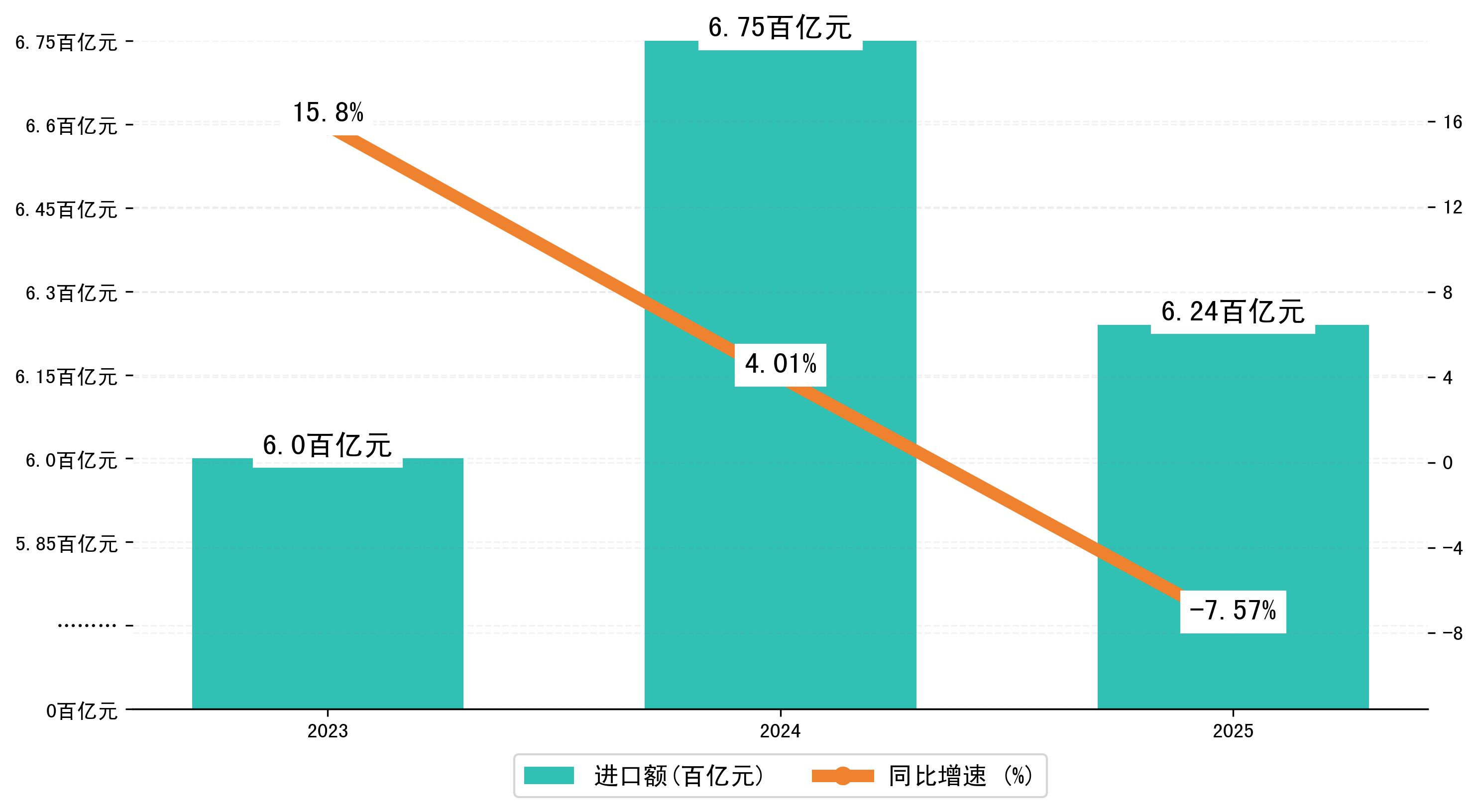以人民币计,2025年1-8月长沙市进口额为623,6773.9792万元,相比上年同期减少了51,0862.5228万元,同比减少了-7.50%。
