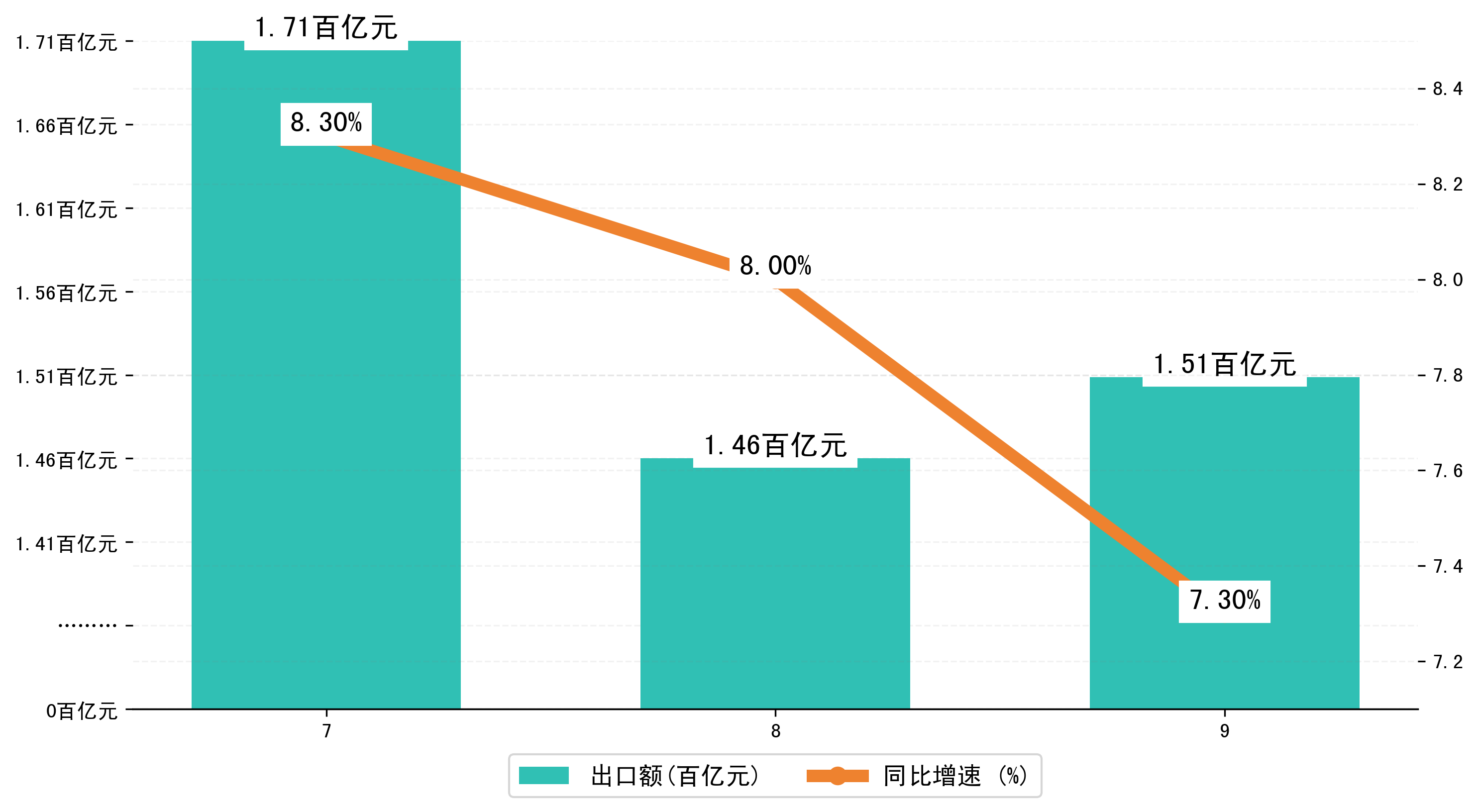 一、2025年9月长沙市单月出口总额及进出口差额统计分析