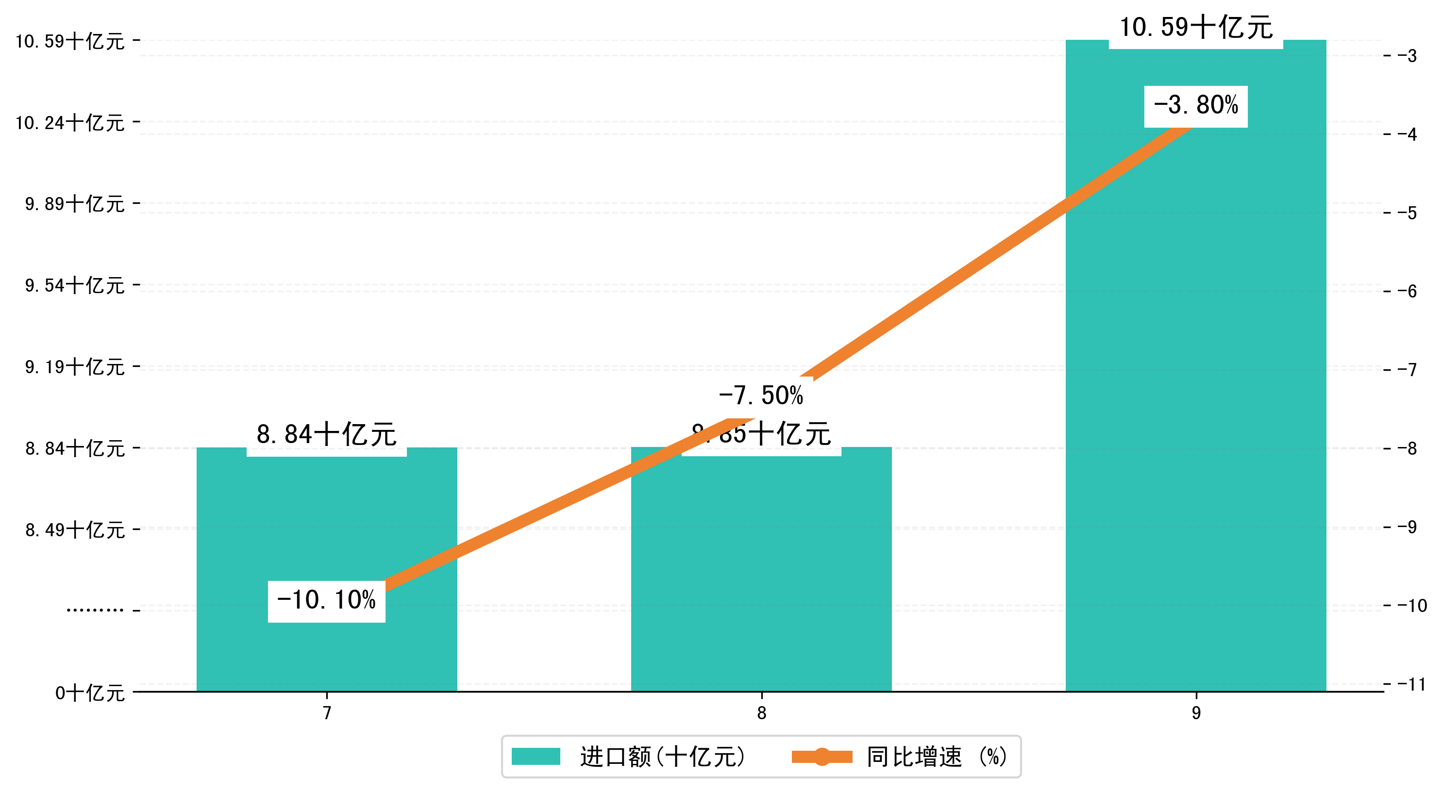 以人民币计,2025年1-9月长沙市进口额为729,1971.8096万元,相比上年同期减少了29,7388.0358万元,同比减少了-3.80%。