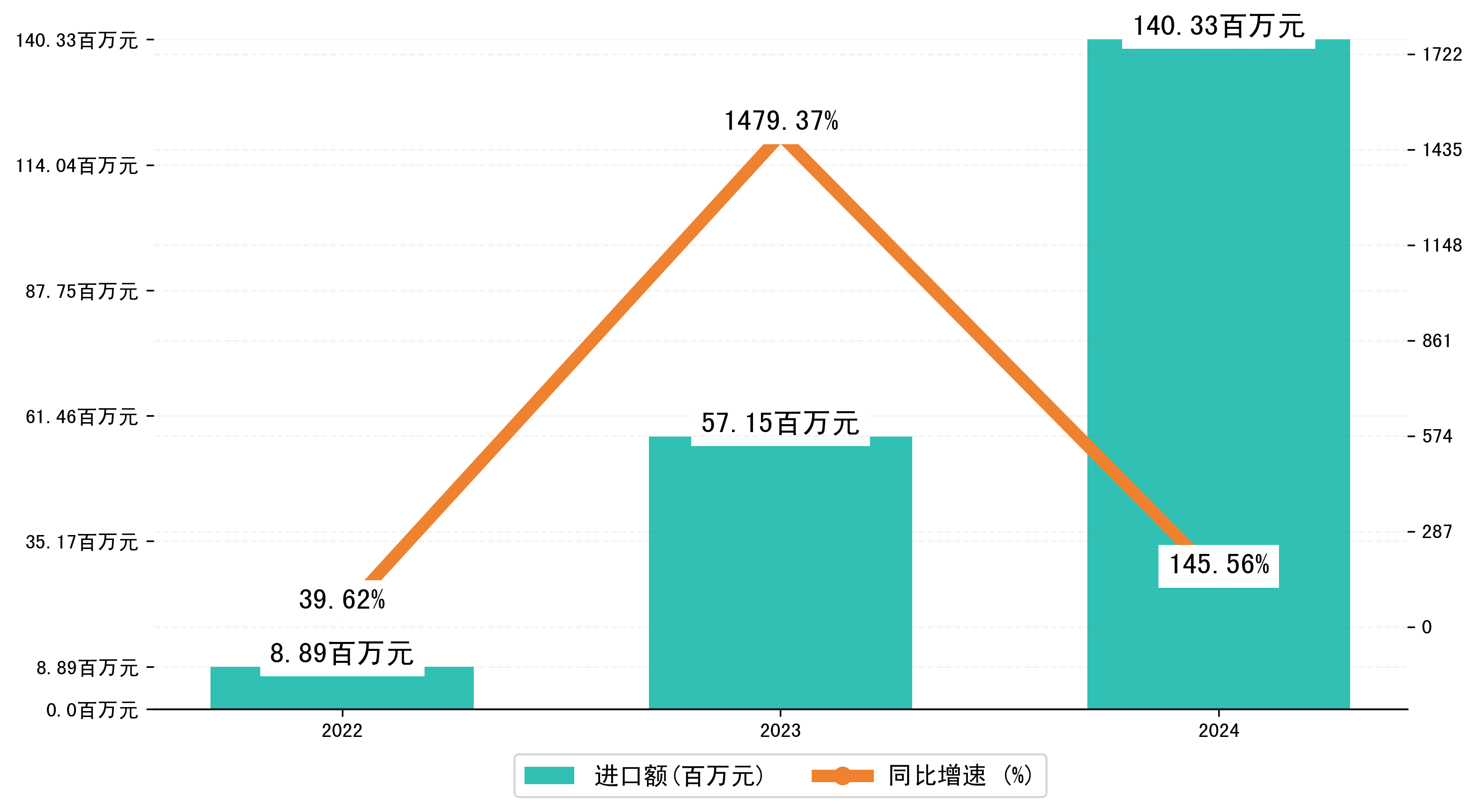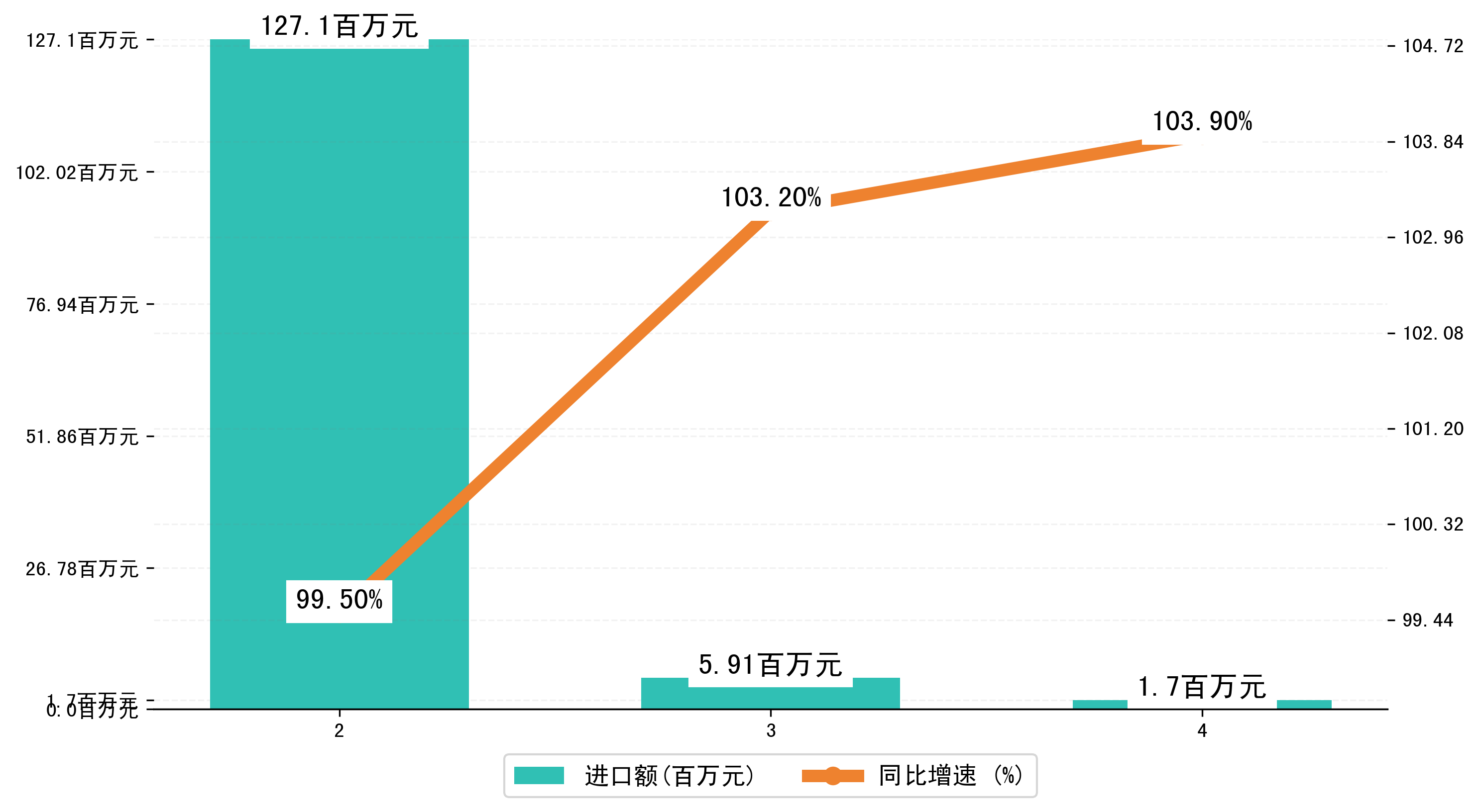 以人民币计,2024年1-4月长治市进口额为1,4033.2175万元,相比上年同期增加了8318.4908万元,同比增加了103.90%。