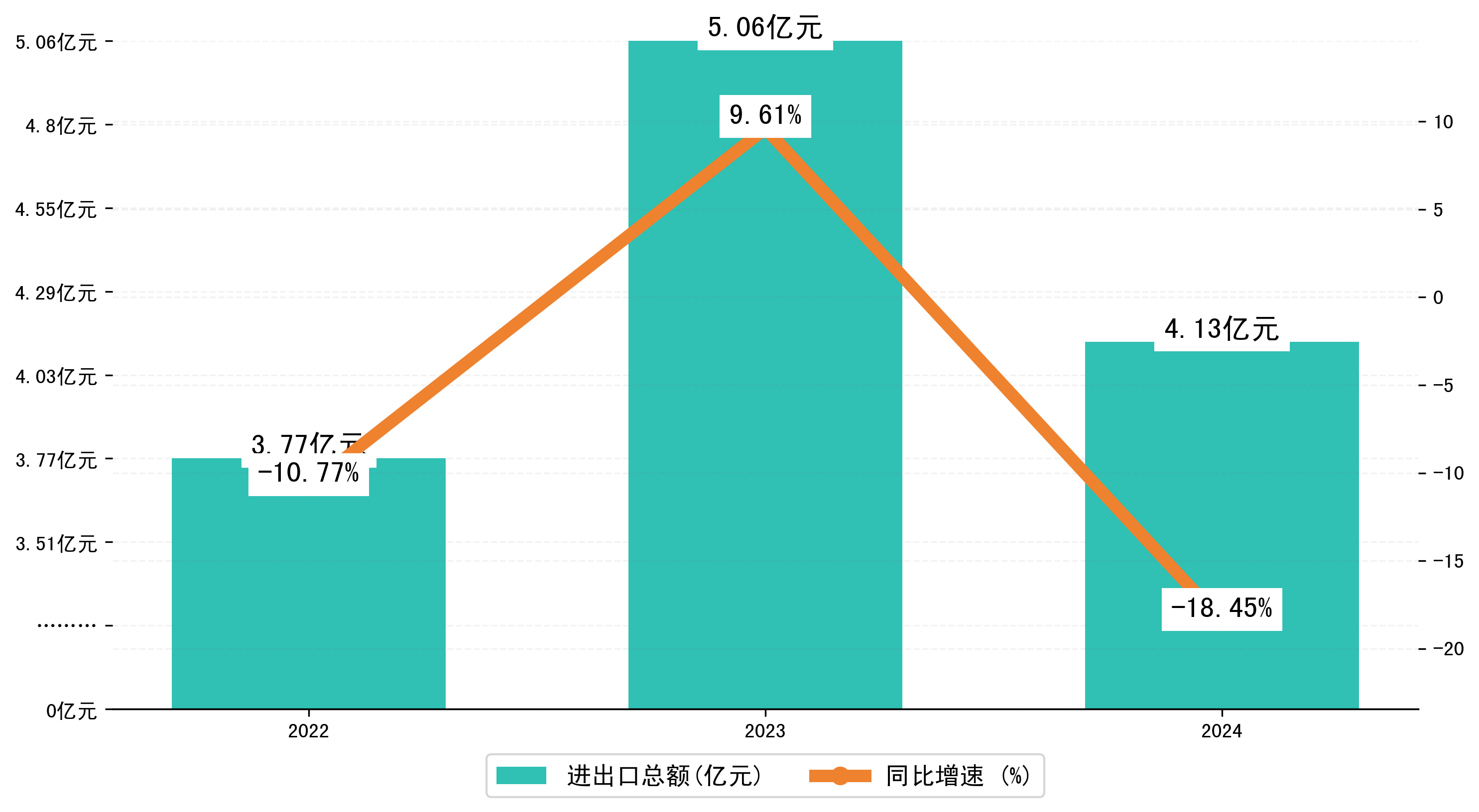 以人民币计,2024年1-4月长治市进出口总额为4,1295.5669万元,相比上年同期减少了9343.7783万元,同比减少了-20.30%。