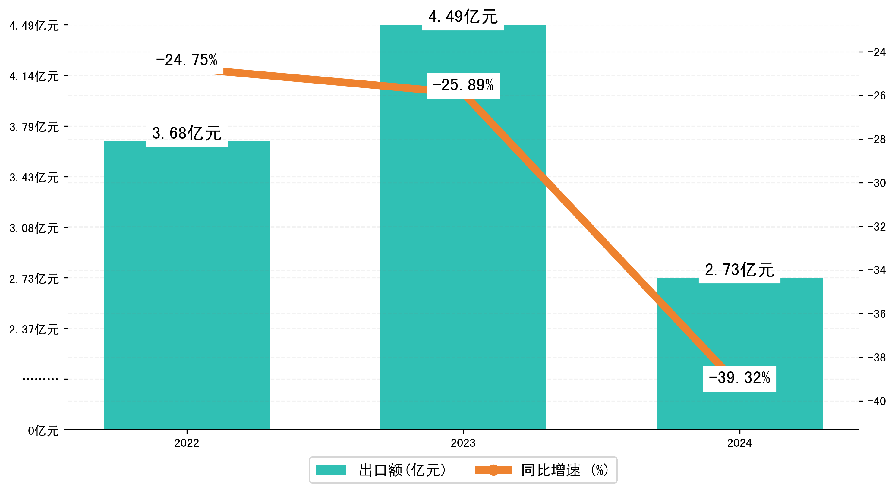 以美元计,2024年4月长治市出口额为1046.9294万美元,相比上月减少了71.7413万美元;相比上年同期减少了951.0528万美元,同比减少-41.40%。