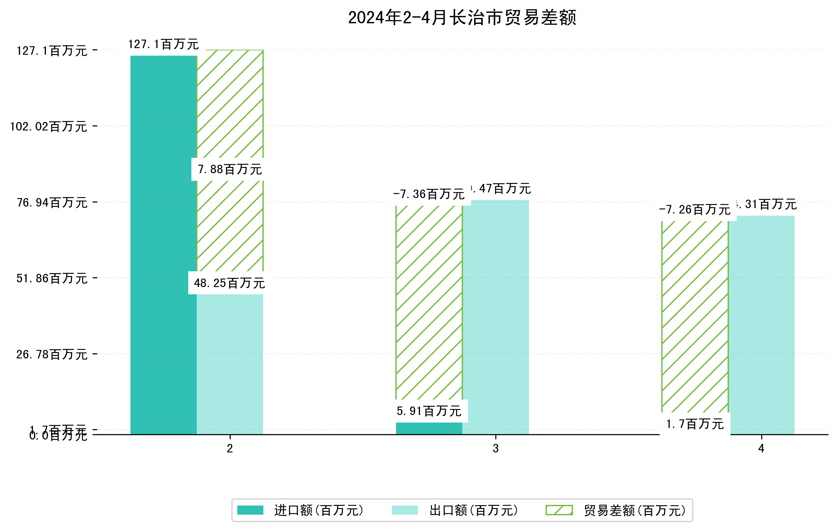 一、2024年4月长治市单月出口总额及进出口差额统计分析