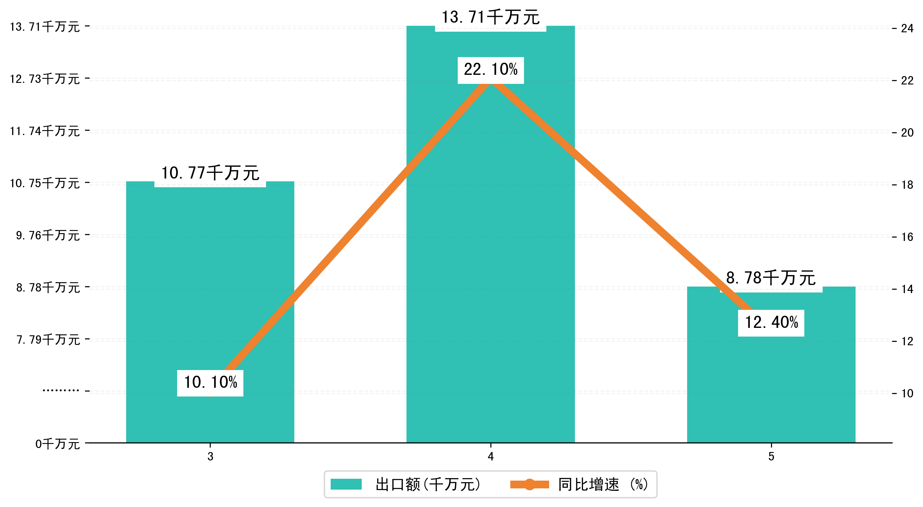 以人民币计,2023年1-5月长治市出口额为5,3701.5637万元,相比上年同期增加了5659.8093万元,同比增加了12.40%。