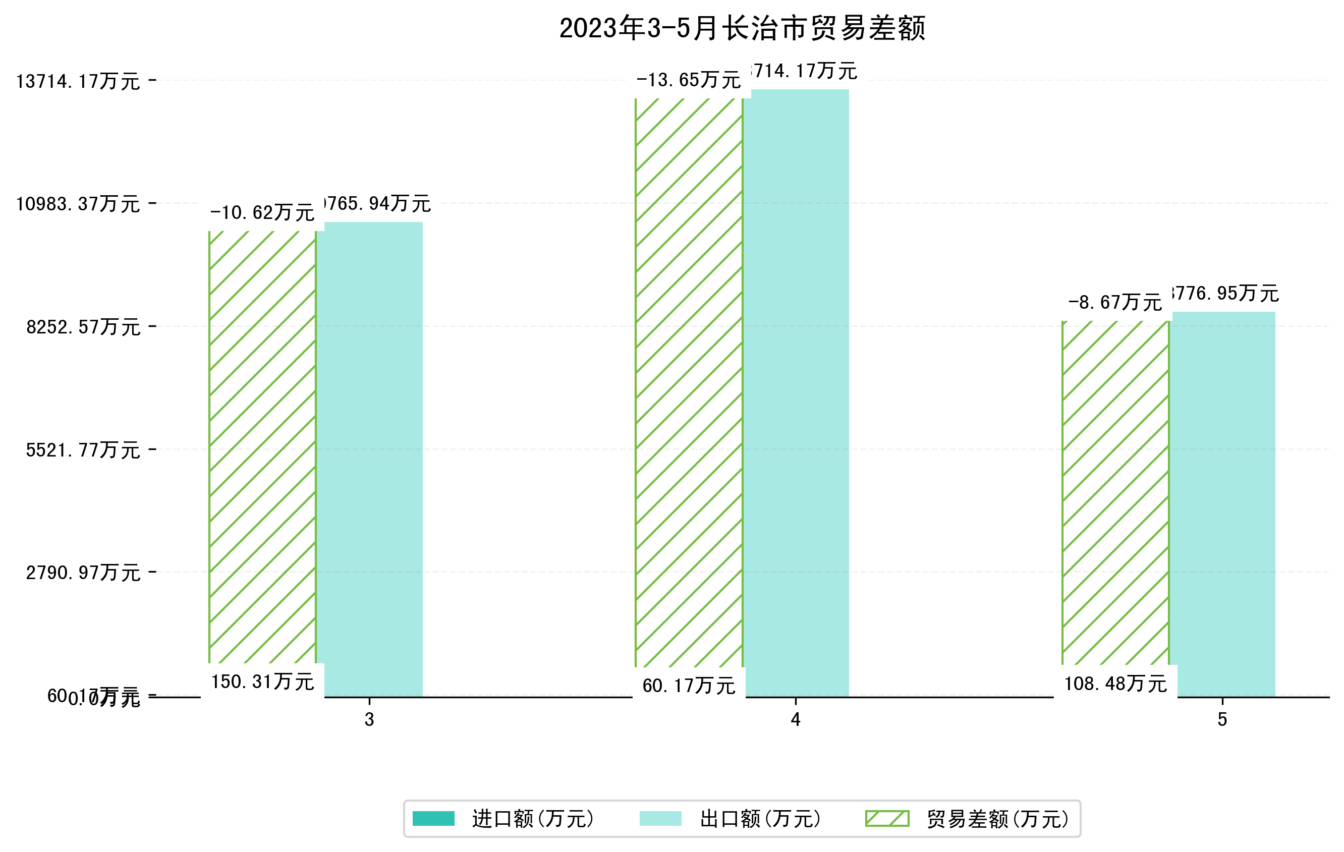 一、2023年5月长治市单月出口总额及进出口差额统计分析