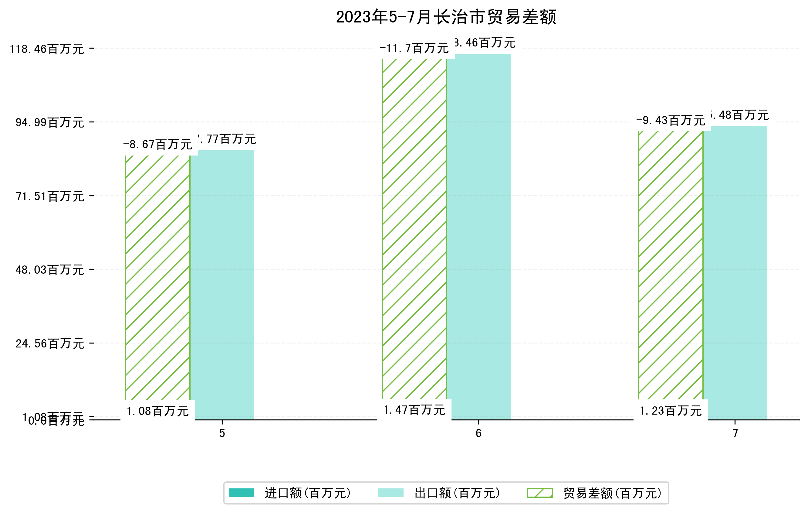 (图一:2023年5-7月长治市进出口总额)