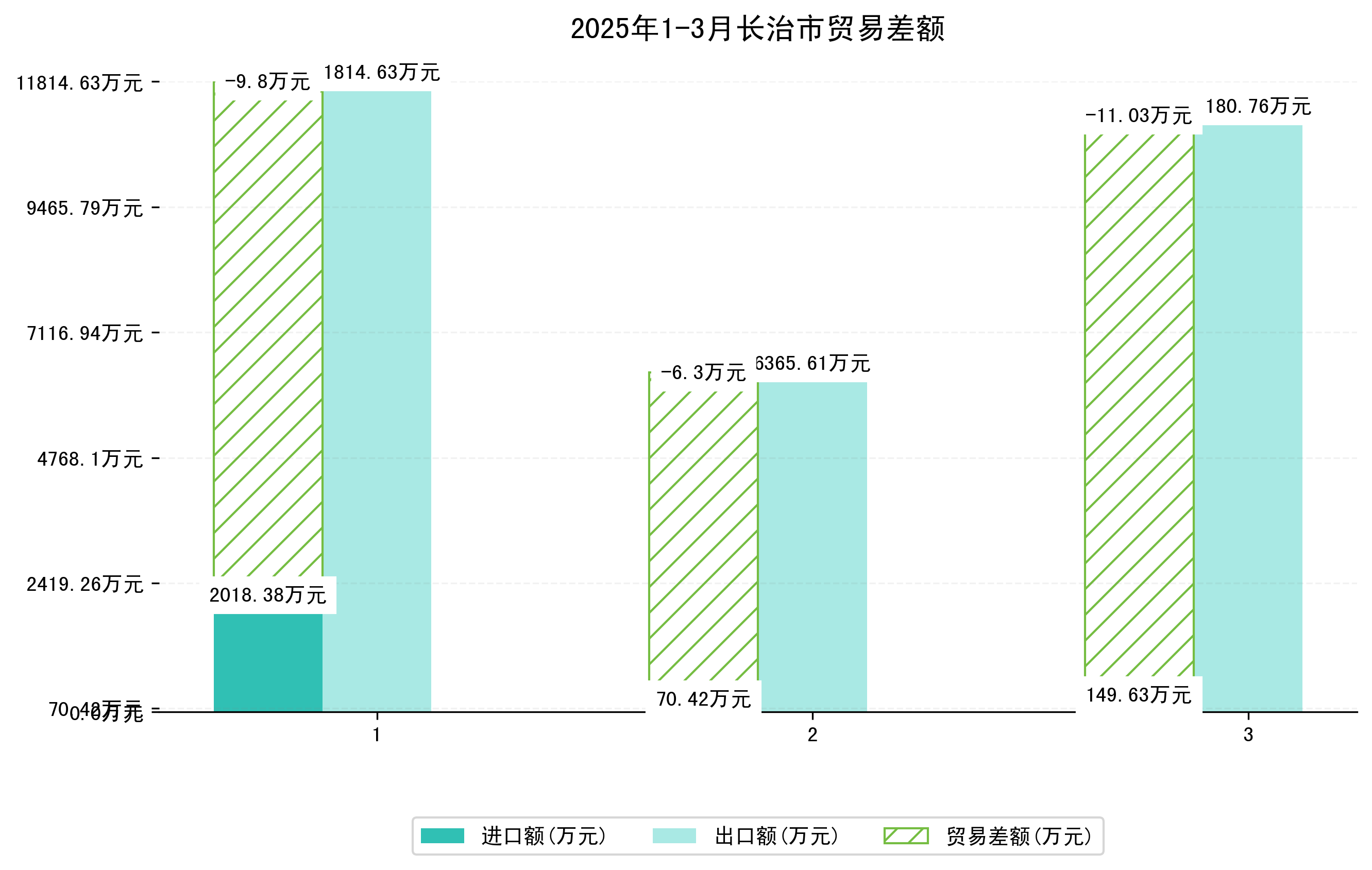 一、2025年3月长治市单月出口总额及进出口差额统计分析