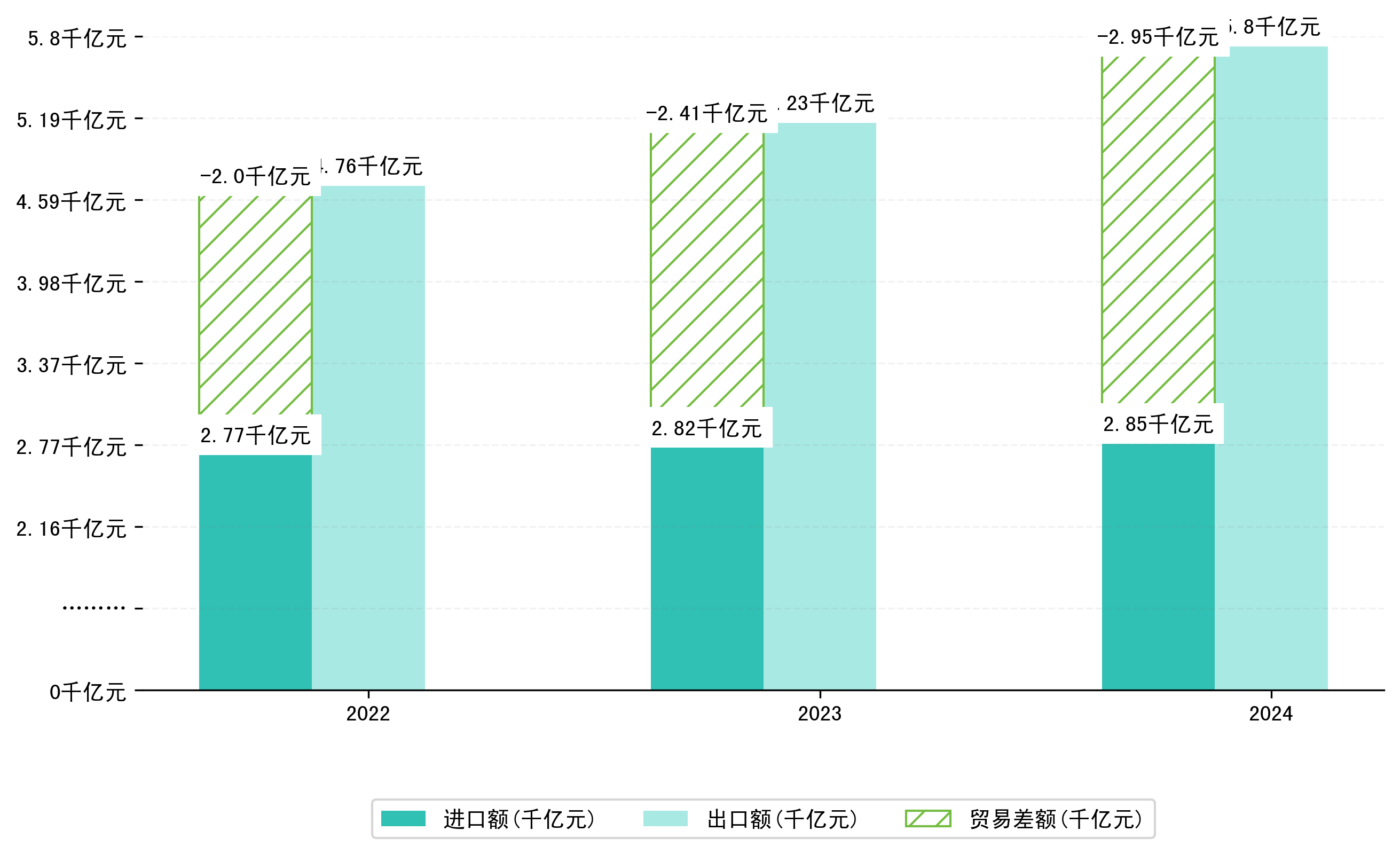 以美元计,2024年1-12月安徽省贸易差额为414,1974,2312万美元(贸易顺差),相比上年同期增加了71,1688,1817万美元,同比增加20.75%。