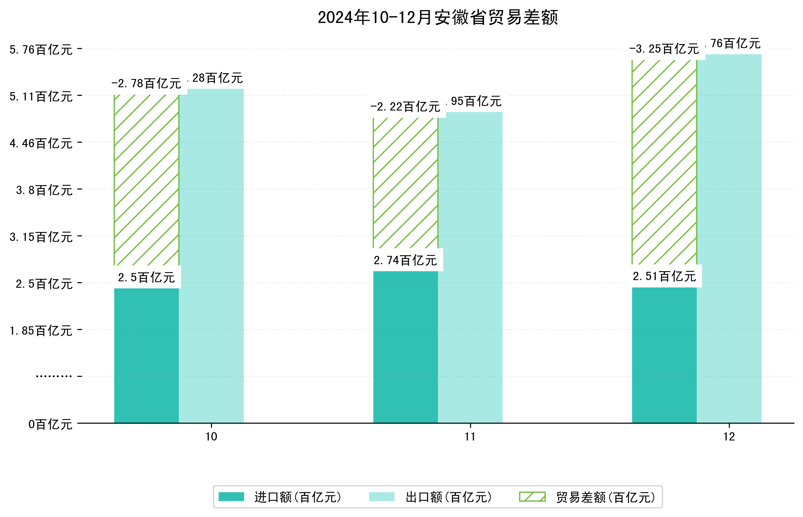 2024年12月安徽省进出口总额及进出口差额统计分析