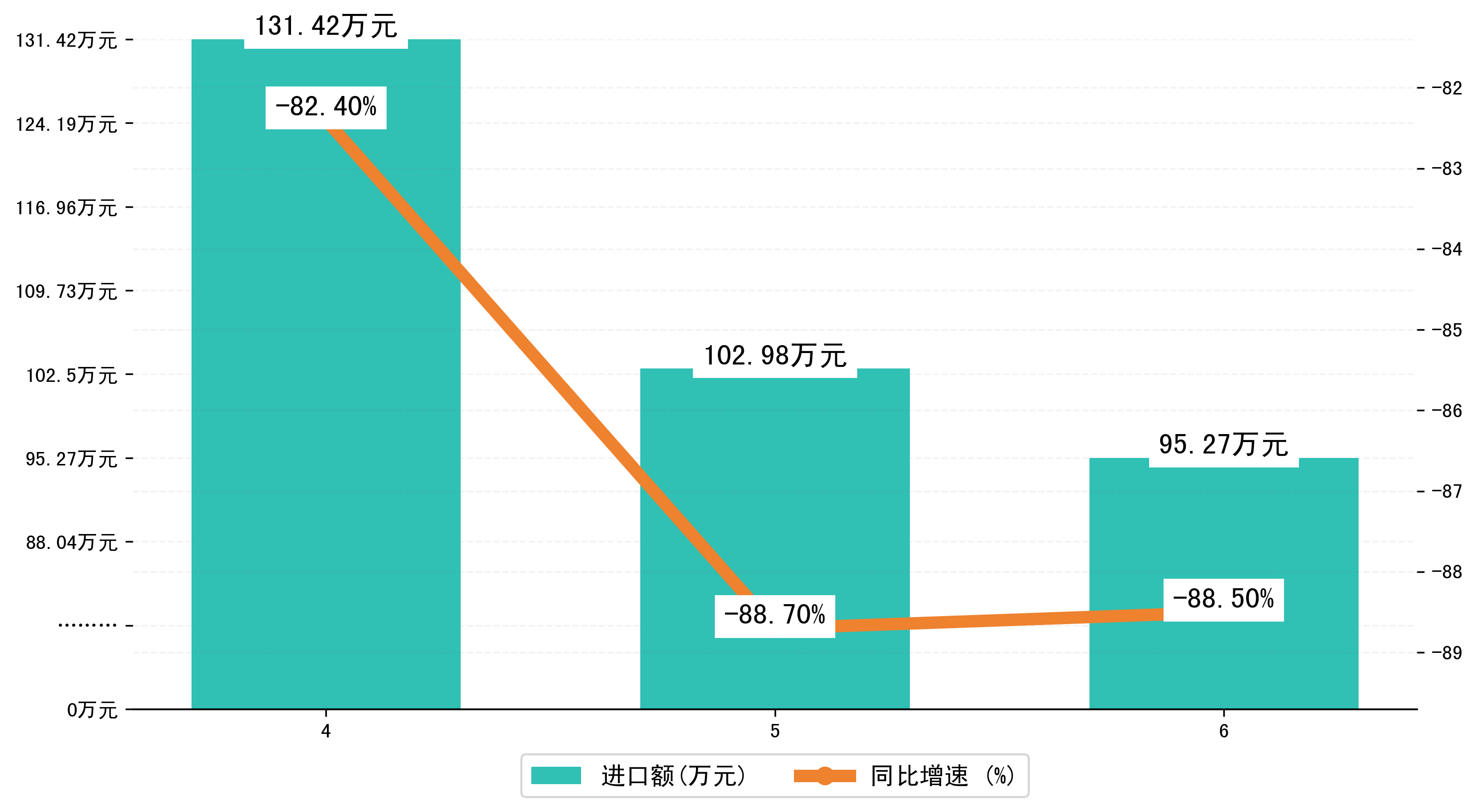 以人民币计,2025年6月长治市进口额为95.2677万元,相比上月减少了7.7163万元;相比上年同期减少了327.5114万元,同比减少了-88.50%。