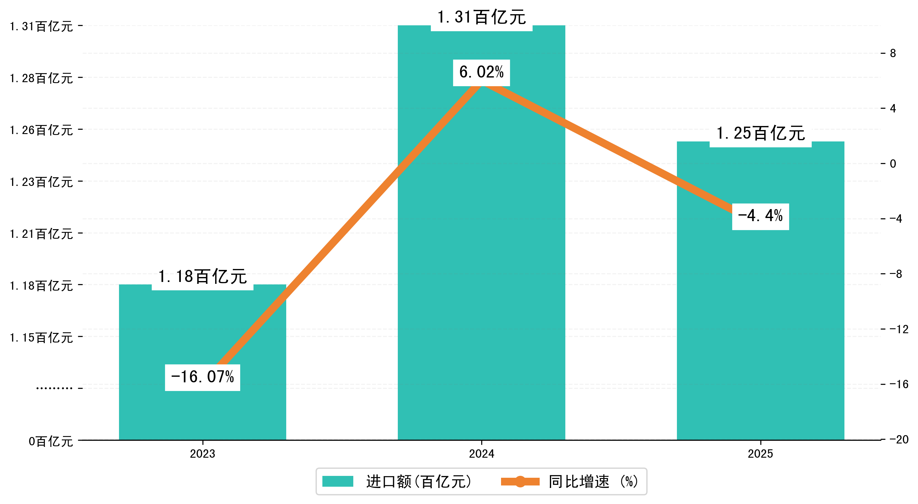 以人民币计,2025年1-5月南昌市进口额为125,0594.5184万元,相比上年同期减少了5,7555.3024万元,同比减少了-1.20%。