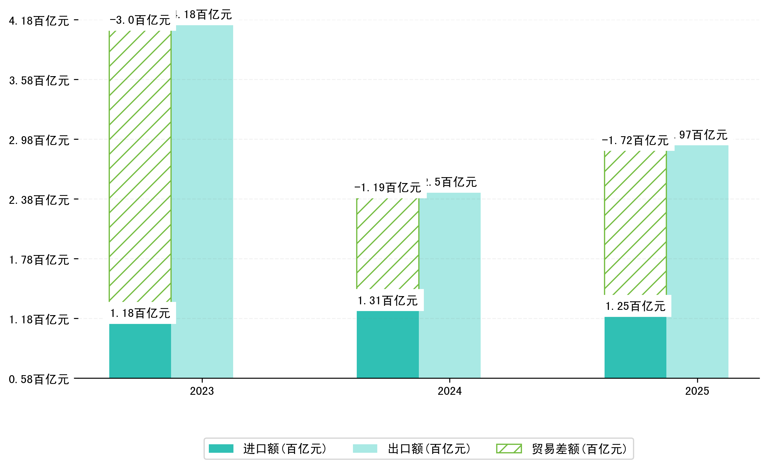 以美元计,2025年1-5月南昌市贸易差额为23,9670,1043万美元(贸易顺差),相比上年同期增加了7,2167,4900万美元,同比增加43.08%。