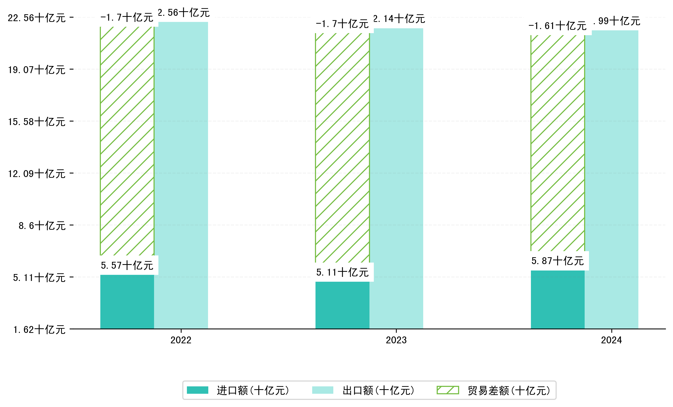 以美元计,2024年1-1月常州市贸易差额为22,6835,6703万美元(贸易顺差),相比上年同期减少了1,7171,4791万美元,同比减少-7.04%。