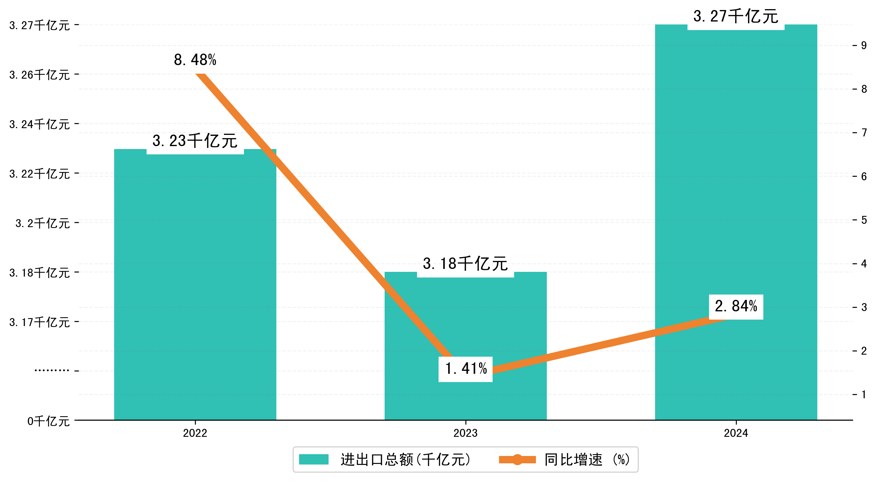 以人民币计,2024年12月常州市进出口总额为320,3200.3821万元,相比上月增加了46,0146.999万元;相比上年同期增加了54,2378.4624万元,同比增加了2.80%。