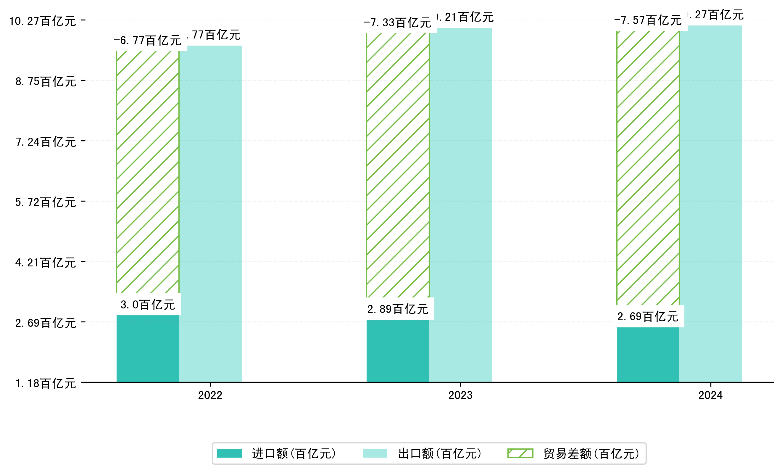以美元计,2024年5月常州市贸易差额为25,4704,9187万美元(贸易顺差),相比上月增加了4,4364,5749万美元;相比上年同期增加了3,8729,2902万美元,同比增加17.93%。