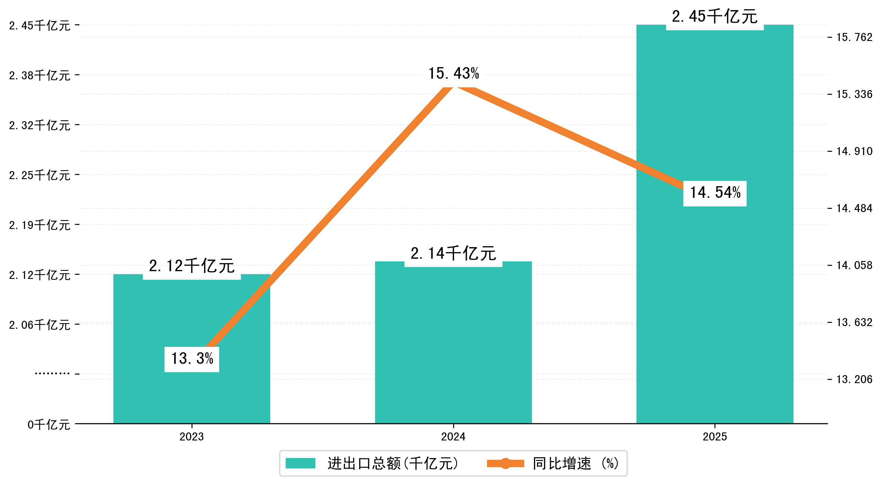 以人民币计,2025年1-8月常州市贸易差额为1555,0767,4071万元(贸易顺差),相比上年同期增加了310,6497,6466万元,同比增加24.96%。