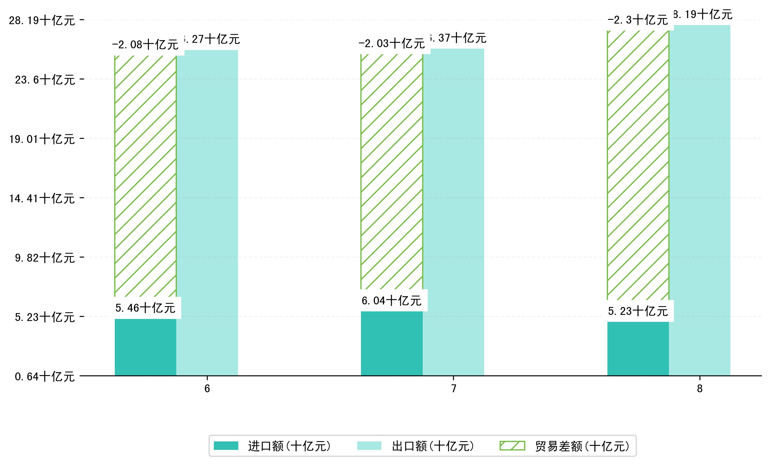 以美元计,2025年8月常州市贸易差额为32,0595,2268万美元(贸易顺差),相比上月增加了3,6894,2265万美元;相比上年同期增加了8,9750,2820万美元,同比增加38.88%。