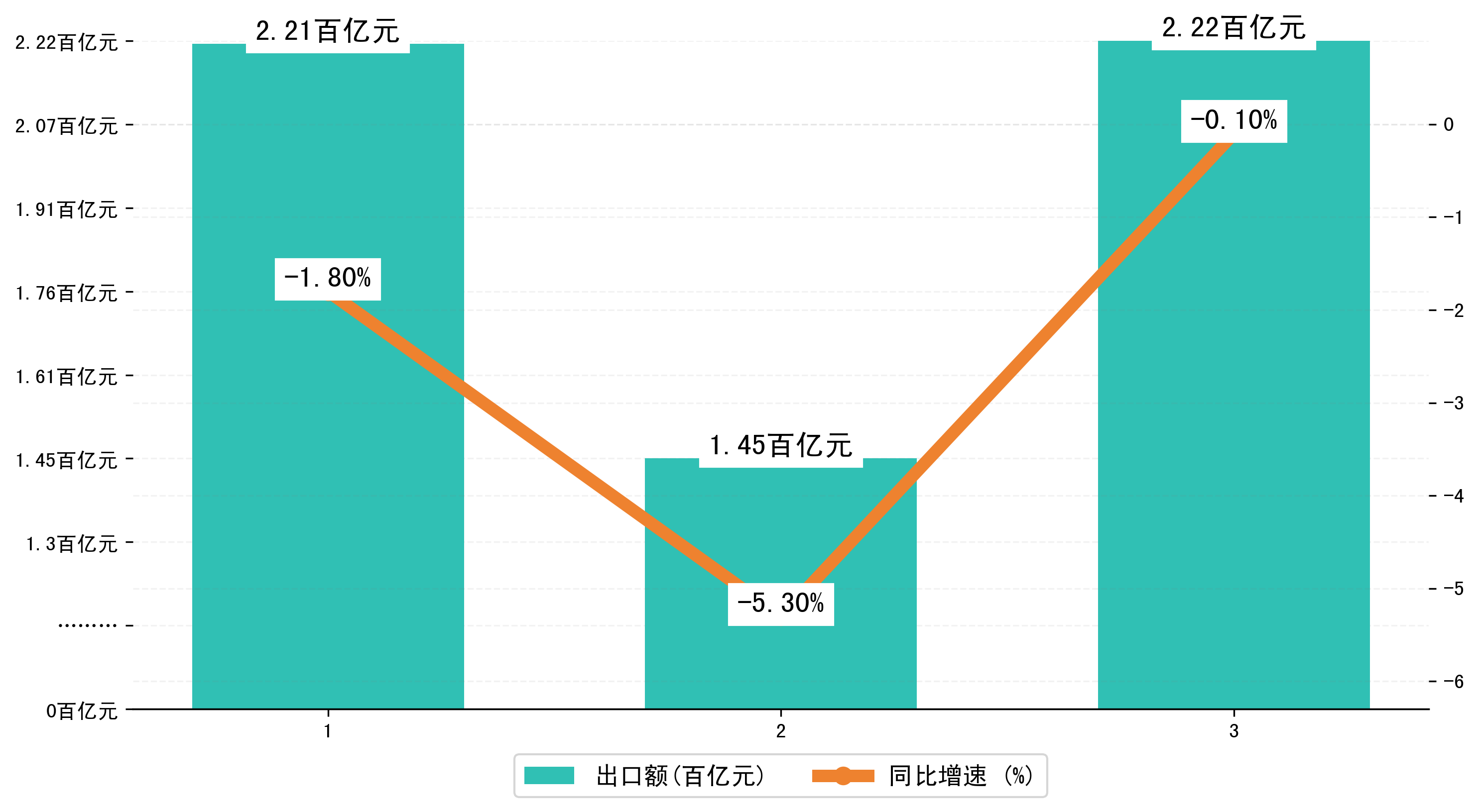 以人民币计,2023年3月常州市出口额为221,9145.9615万元,相比上月增加了76,5536.5018万元;相比上年同期增加了19,5970.4329万元,同比减少了-0.10%。