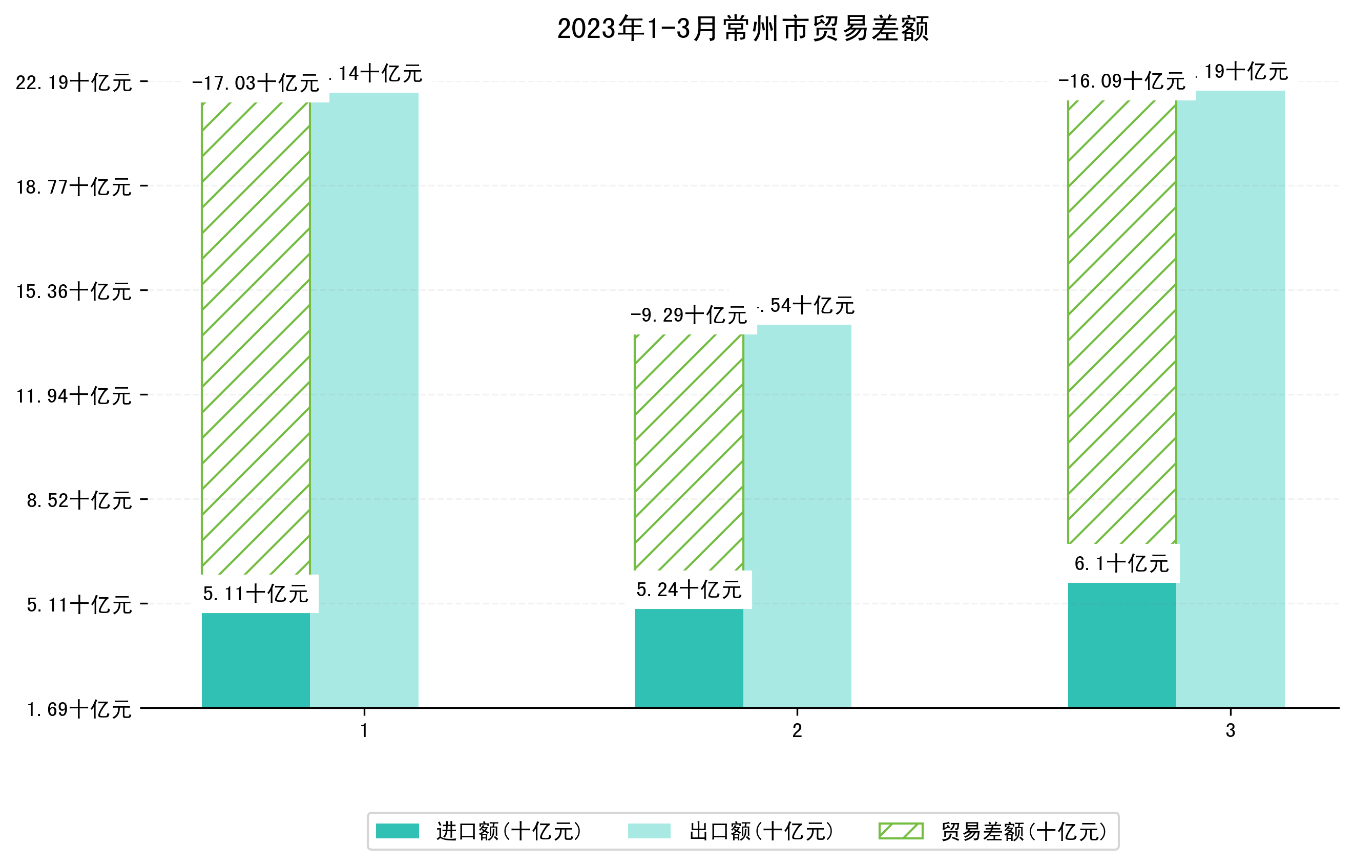 以人民币计,2023年1-3月常州市贸易差额为423,4652,5544万元(贸易顺差),相比上年同期增加了7,6301,1428万元,同比增加1.83%。