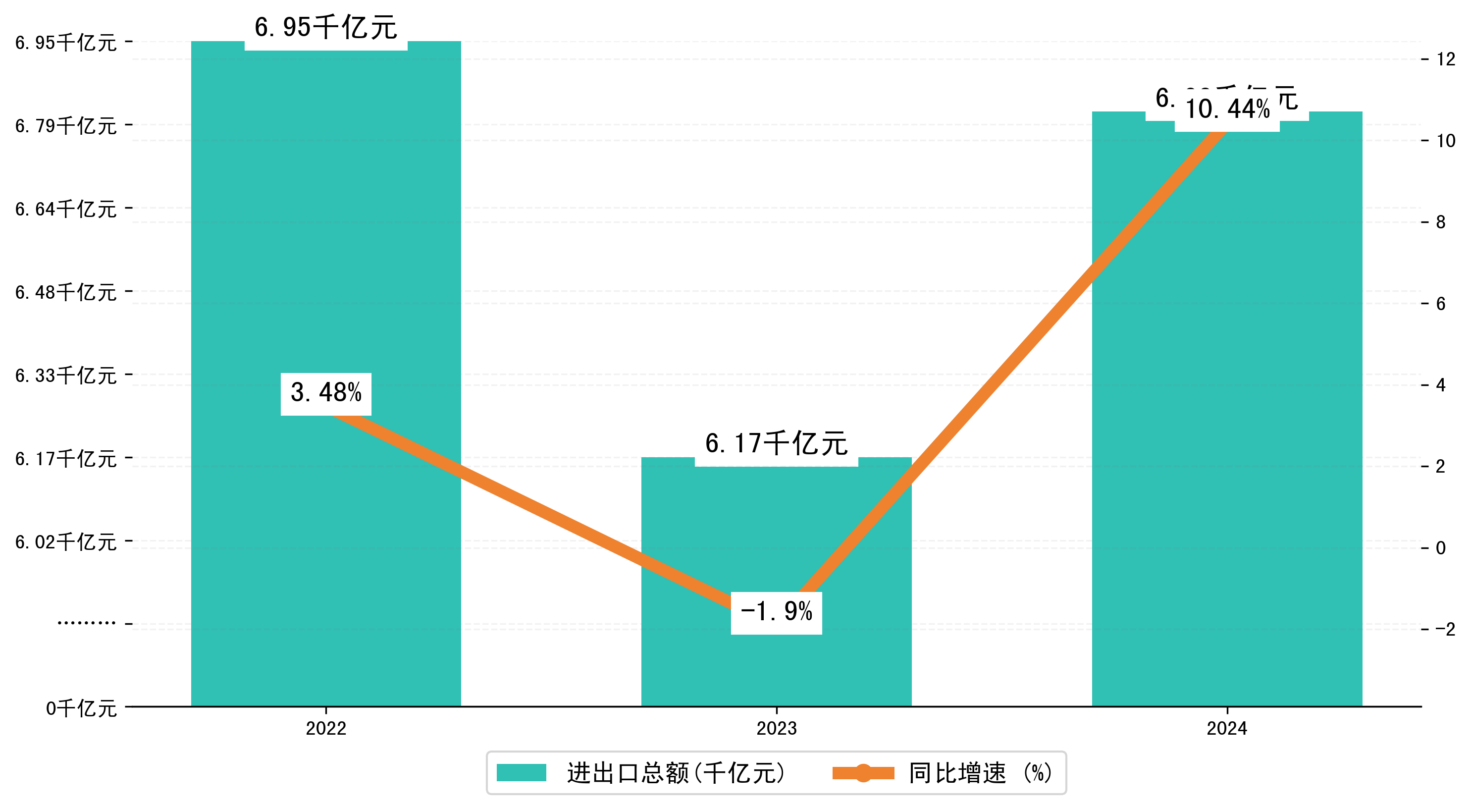 以美元计,2024年1-10月成都市进出口总额为958,7417.7689万美元,相比上年同期增加了77,6407.3267万美元,同比增加8.90%。