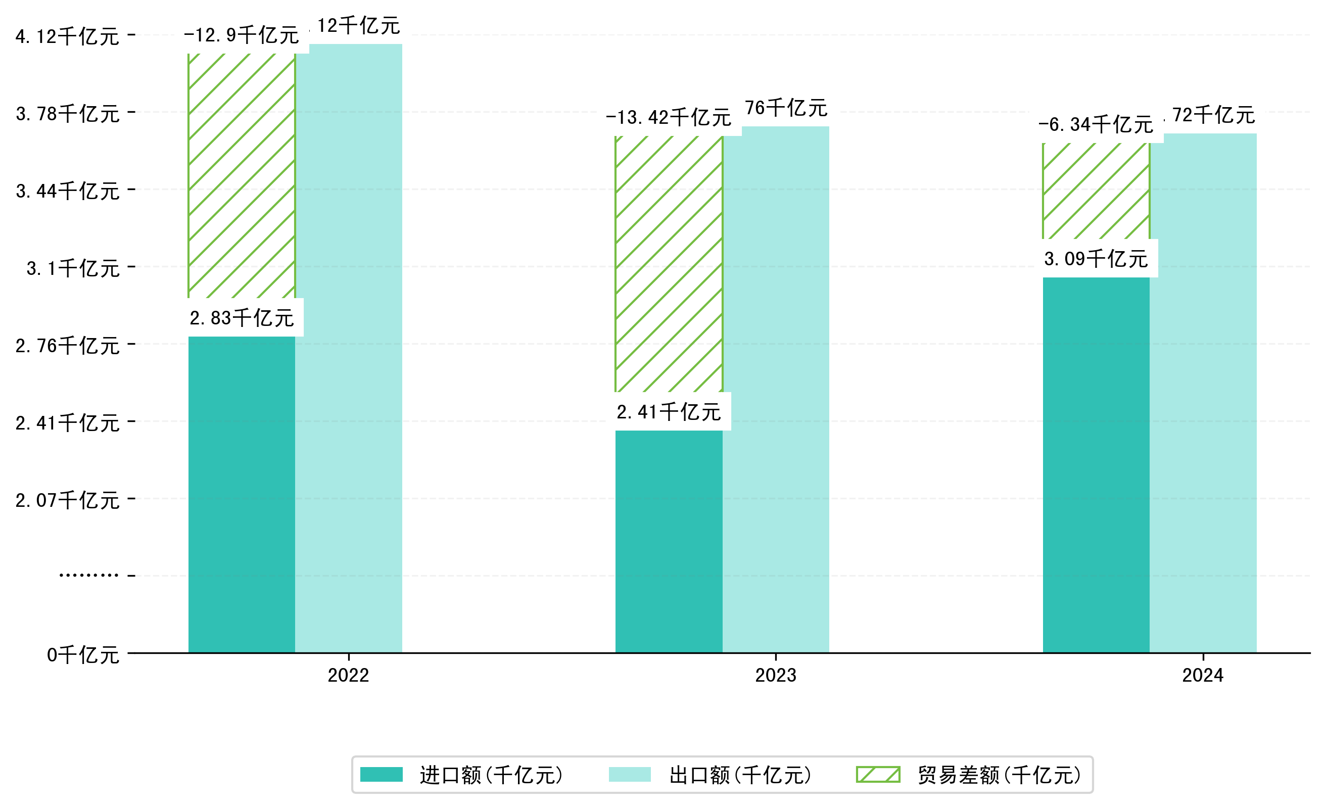 以人民币计,2024年1-10月成都市贸易差额为633,8731,3847万元(贸易顺差),相比上年同期减少了707,9340,3074万元,同比减少-52.76%。