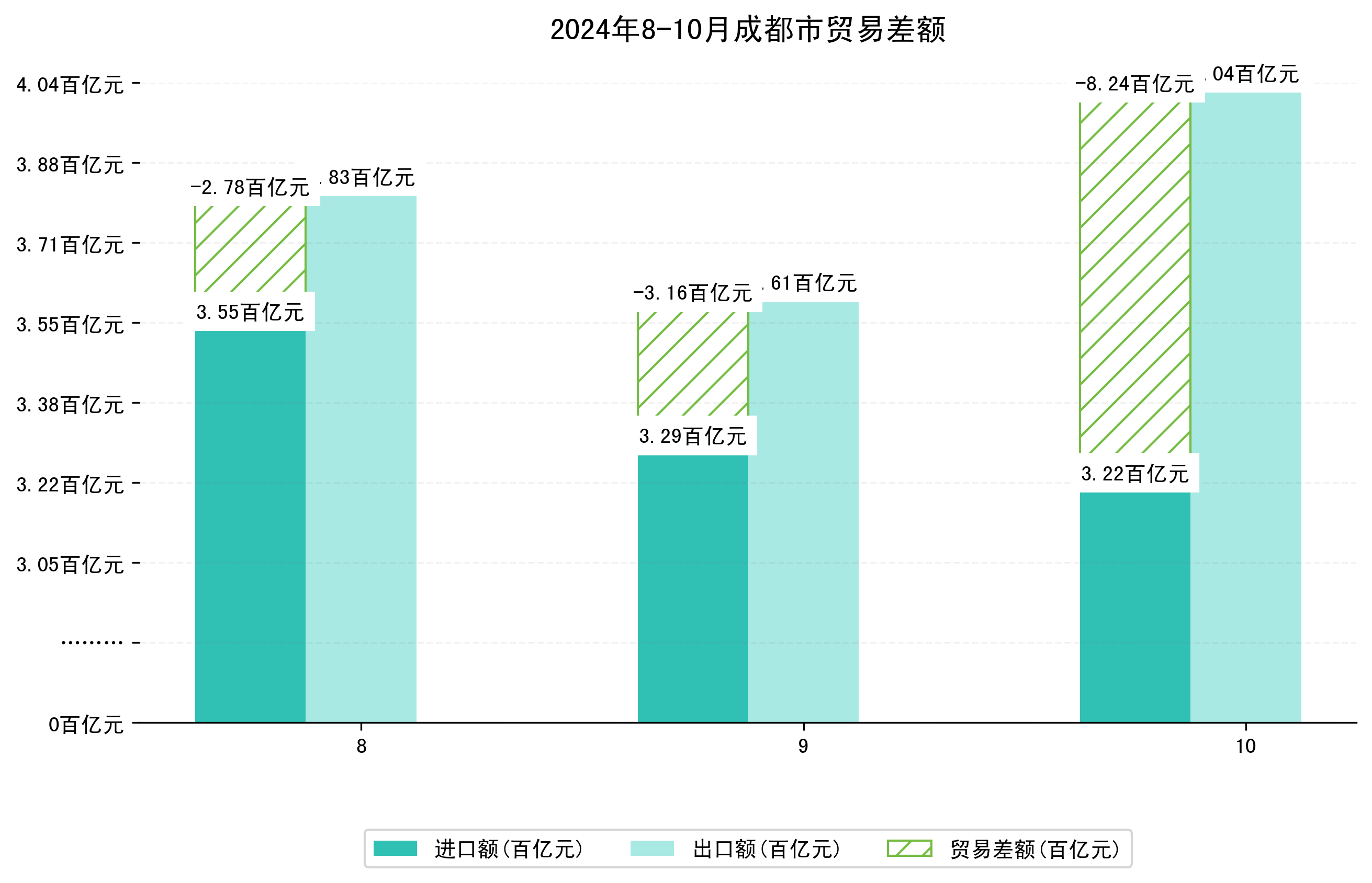一、2024年10月成都市单月出口总额及进出口差额统计分析