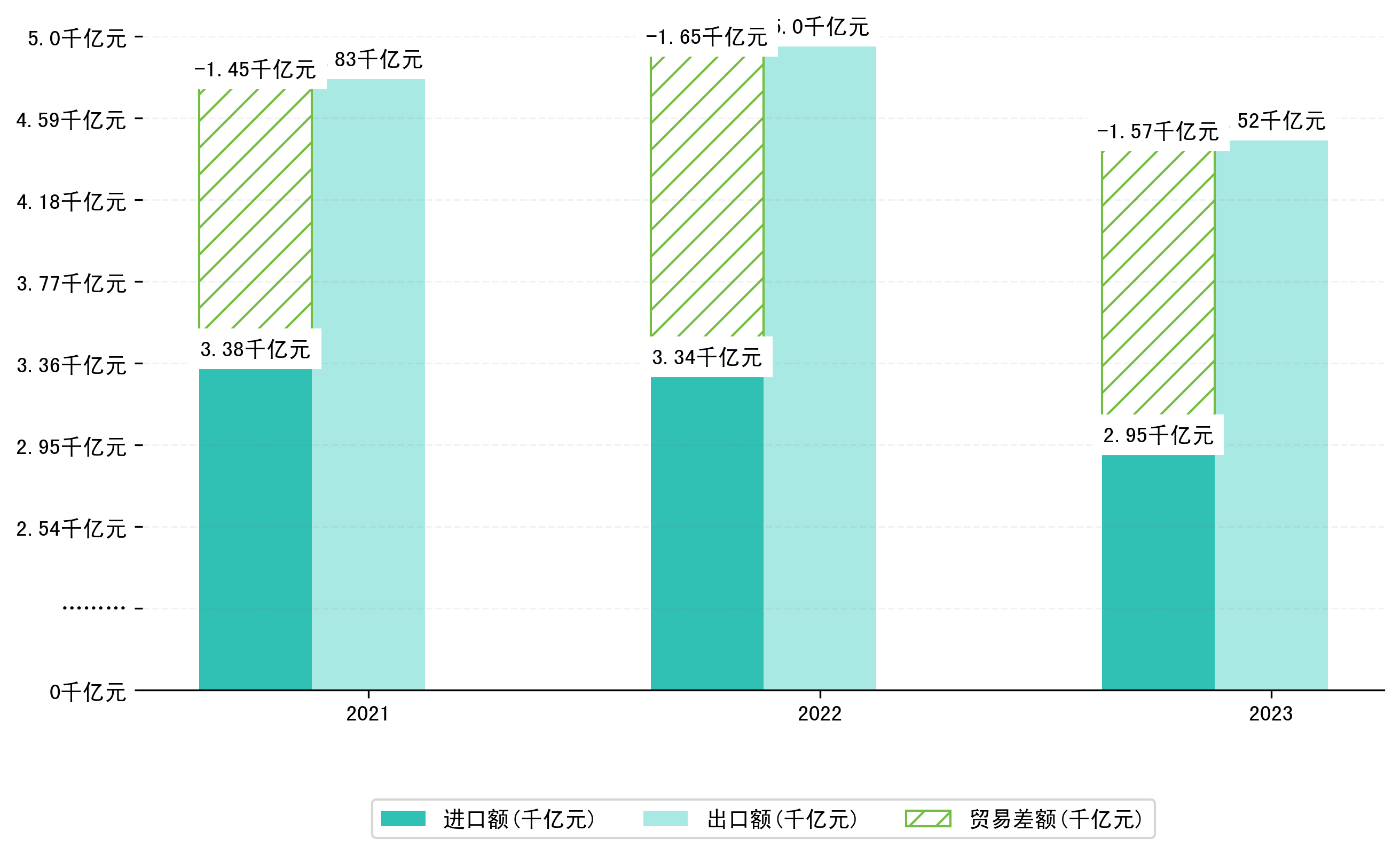 以人民币计,2023年12月成都市贸易差额为91,5042,0451万元(贸易顺差),相比上月减少了51,6434,6525万元,即7,2296,7223万美元;相比上年同期减少了79,0808,9058万元,同比减少-46.36%。
