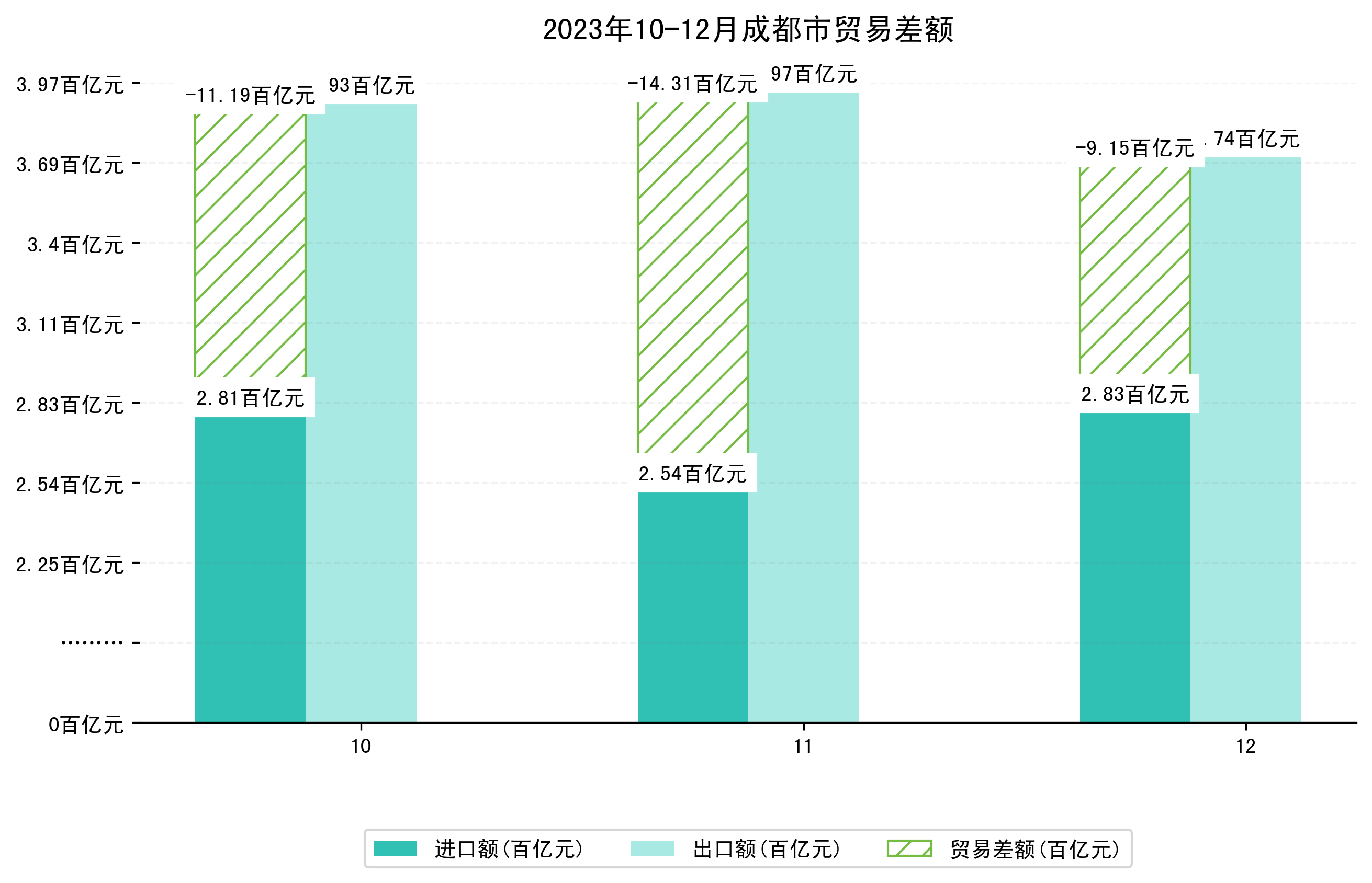 一、2023年12月成都市单月出口总额及进出口差额统计分析